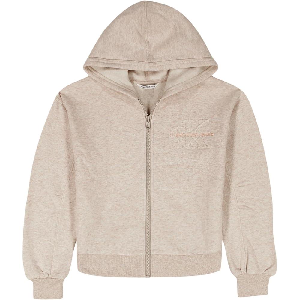 imageCalvin Klein Girls Long Sleeve Full Zip Fleece Hoodie SweatshirtTaupe Heather