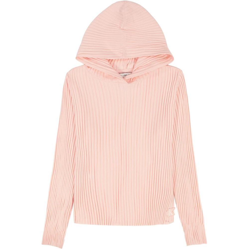 imageCalvin Klein Girls Long Sleeve Popover Cozy Hoodie SweatshirtChunky Rib Gossamer Pink