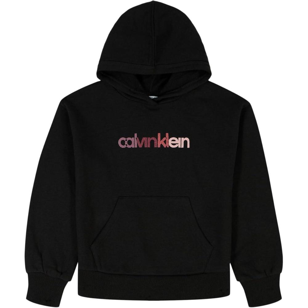 Calvin Klein Girls’ Long Sleeve Popover Fleece Hoodie Sweatshirt(Embroidered Black)