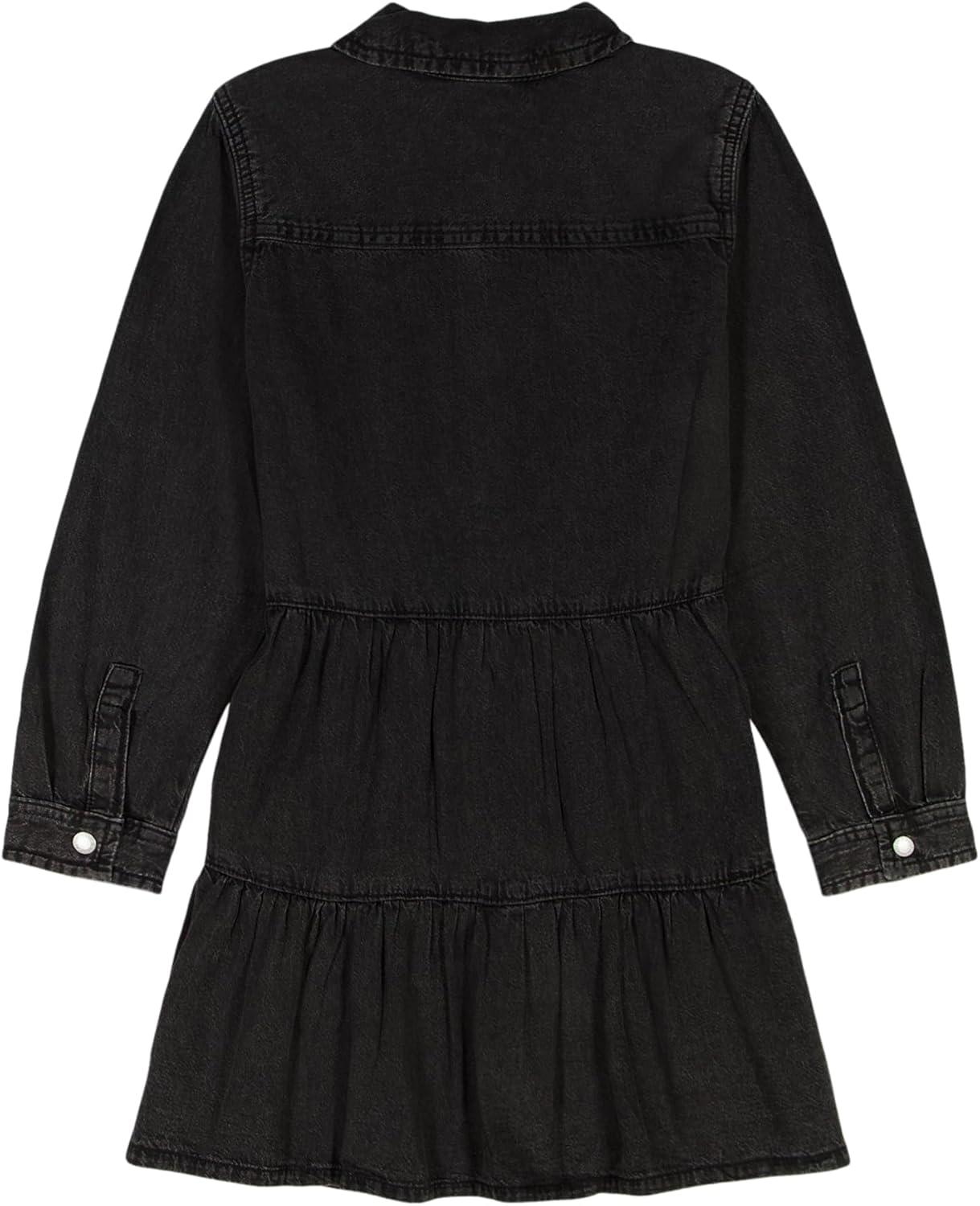 Calvin Klein Girls’ Short Sleeve Lightweight Chambray Denim Shirt Dress(Noire)