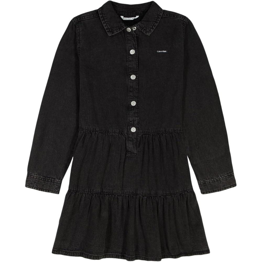 Calvin Klein Girls' Short Sleeve Lightweight Chambray Denim Shirt Dress(Noire)