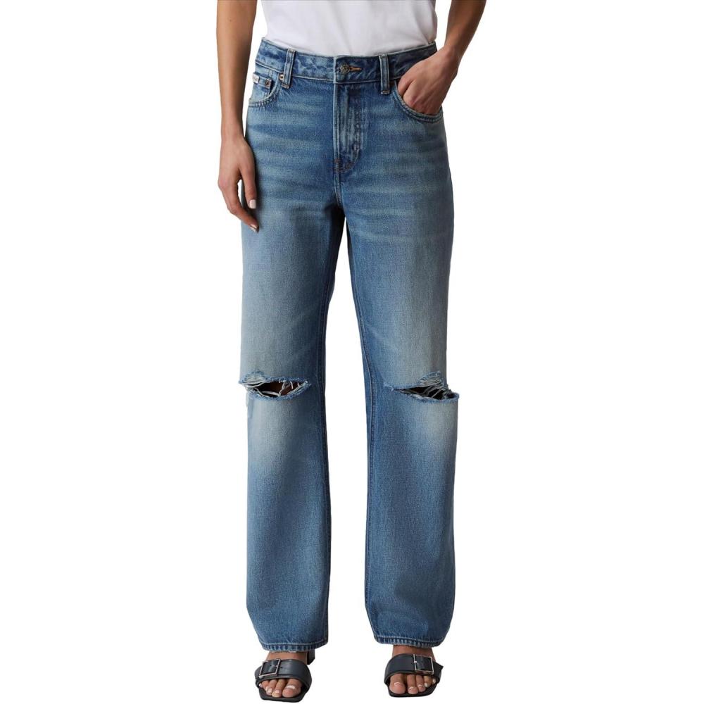 A relaxed straight leg silhouette, these jeans reimagines 90s styling in an updated fit. Crafted from 100% rigid cotton denim that will break-in over time. Finished with a CK monogram logo patch at the back waist.
