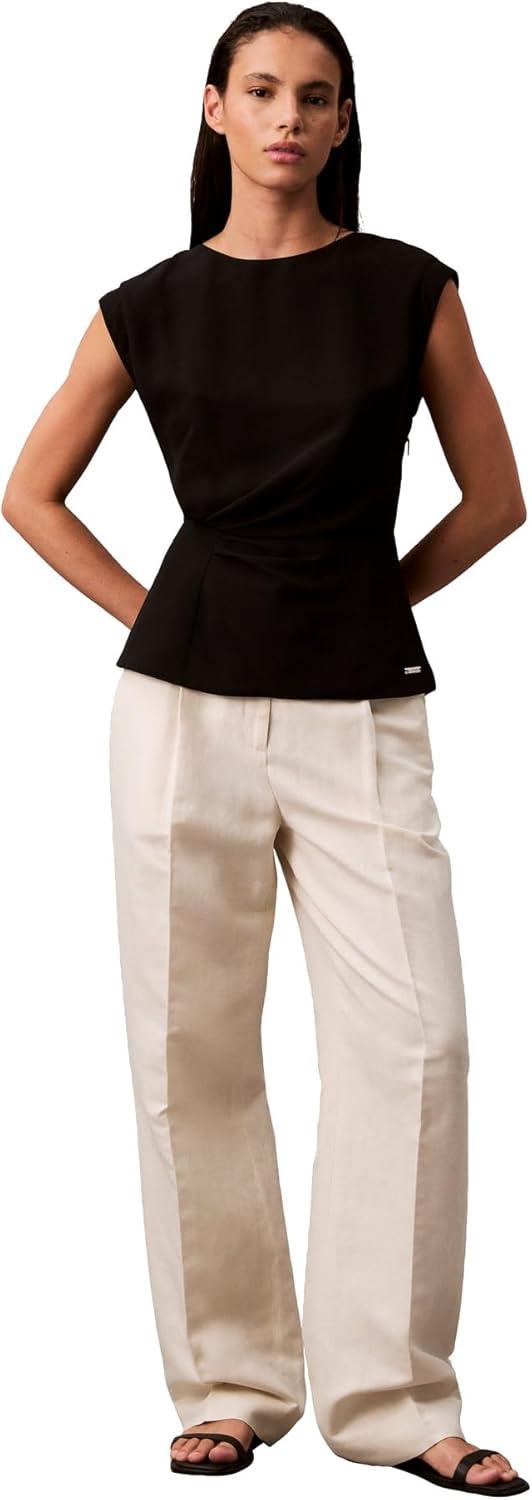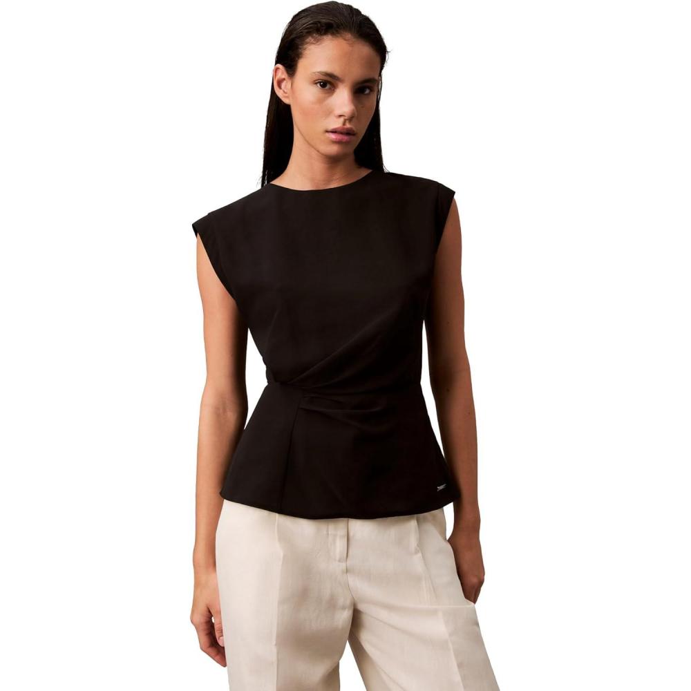 Calvin Klein Jeans Women’s Chiffon Twist Front Blouse(Black)