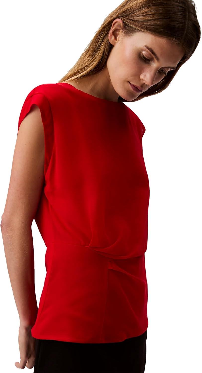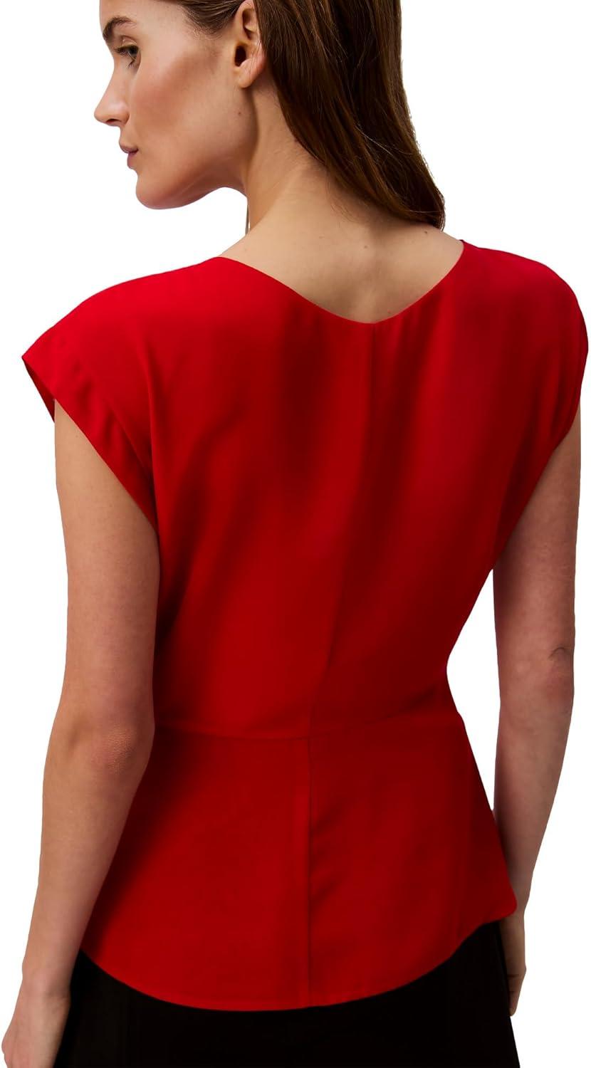 Clean minimalism with a sculptural detail at the front. This blouse has a classic fit with short sleeves and a crewneck. Fully lined for a smooth feel.