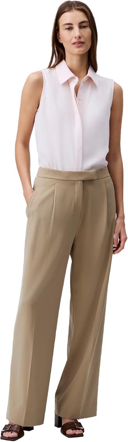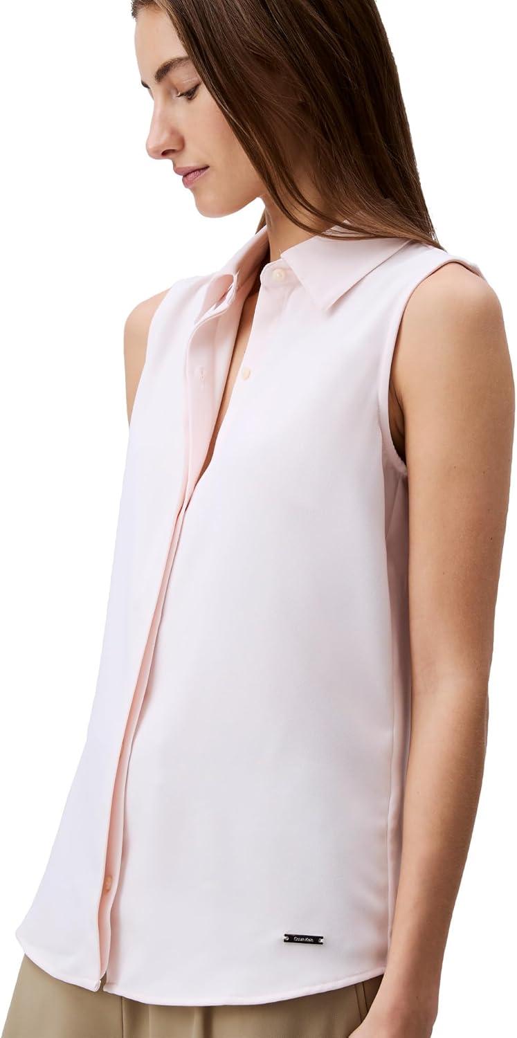 Calvin Klein Jeans Women’s Crepe Sleeveless Button-Down Top(Pearl)