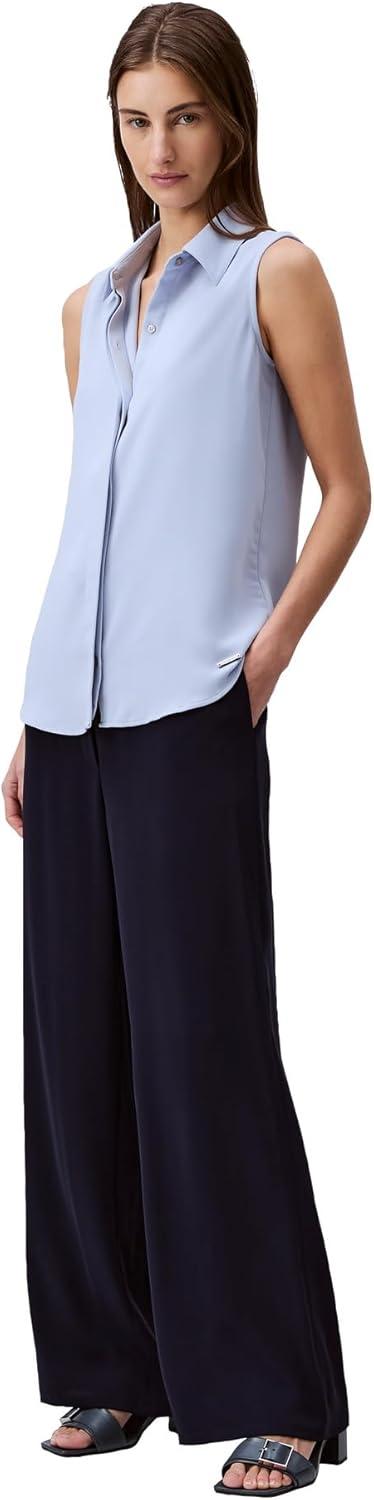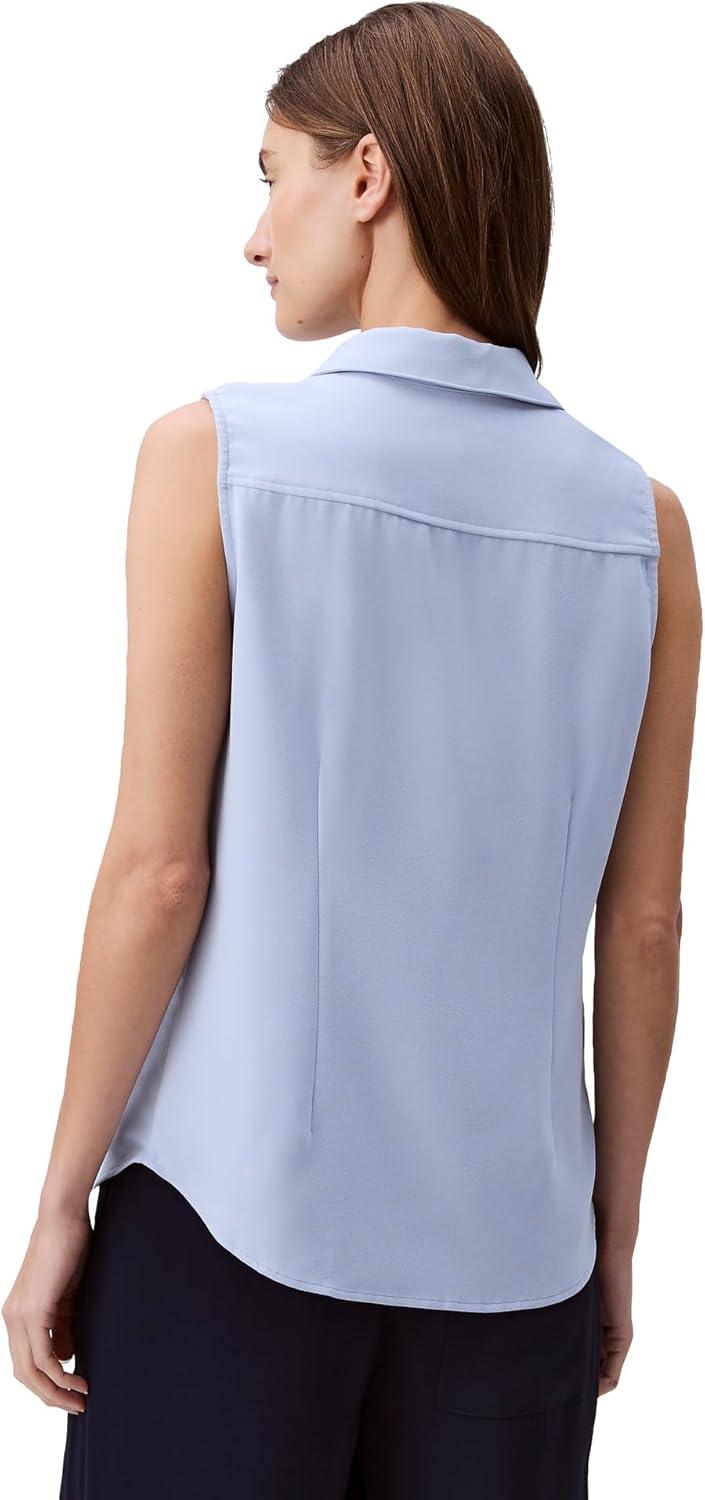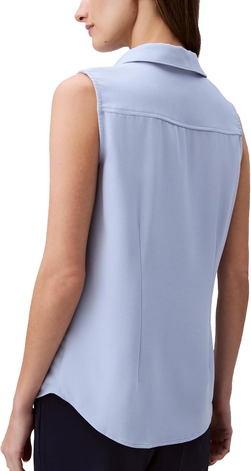 Made from smooth crepe, this top has a classic fit. A sleeveless silhouette with a point collar. Detailed with hidden front button closures.