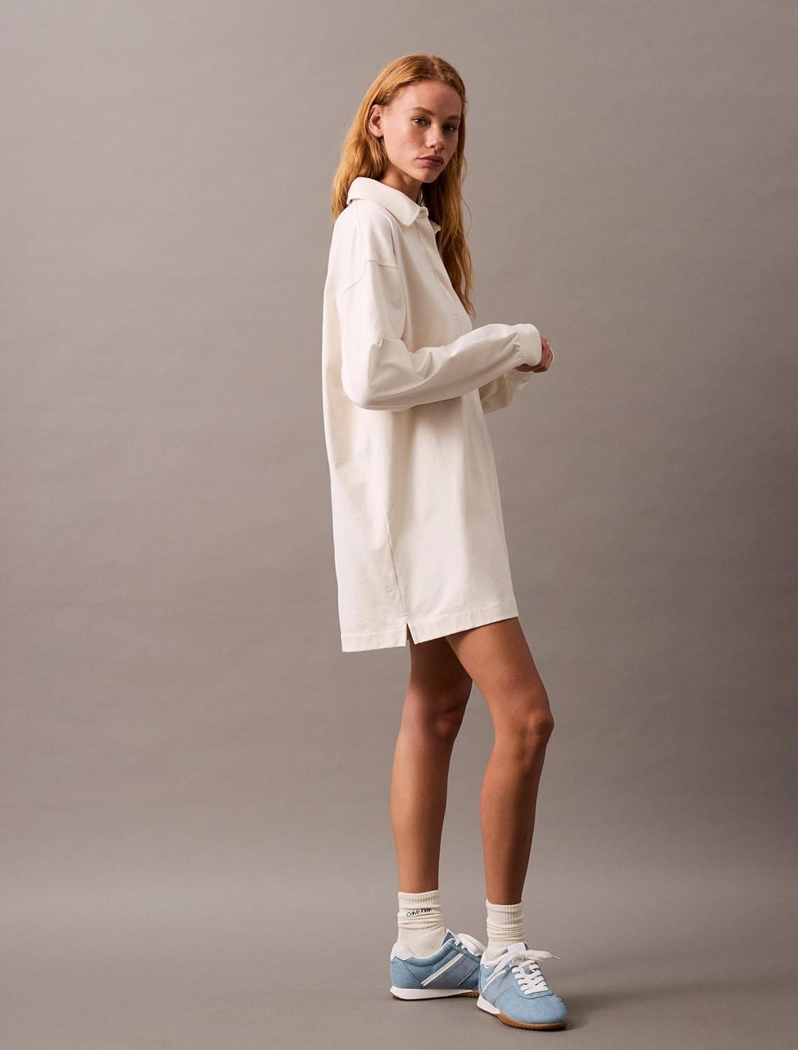 Calvin Klein Jeans Women’s Logo Crest Polo Mini Dress(Tofu)
