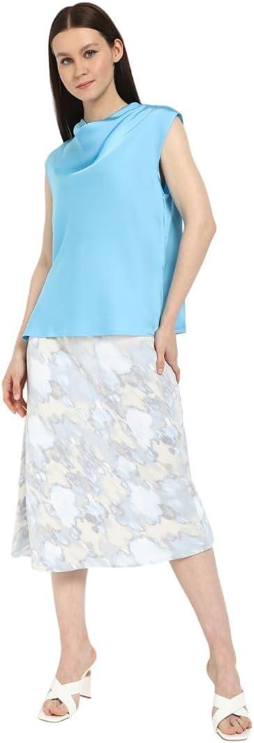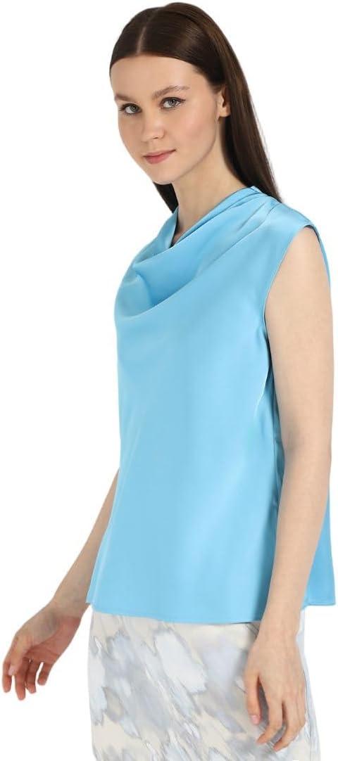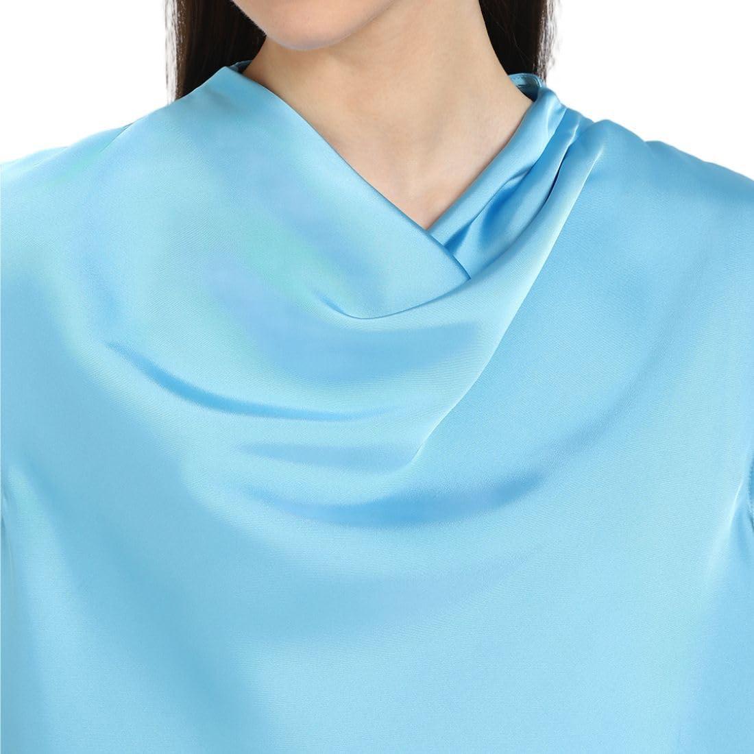 A smooth satin blouse in a classic fit. Styled with short sleeves and a cowl neck. Detailed with a hidden zipper at the back and split at the hem at both sides.
