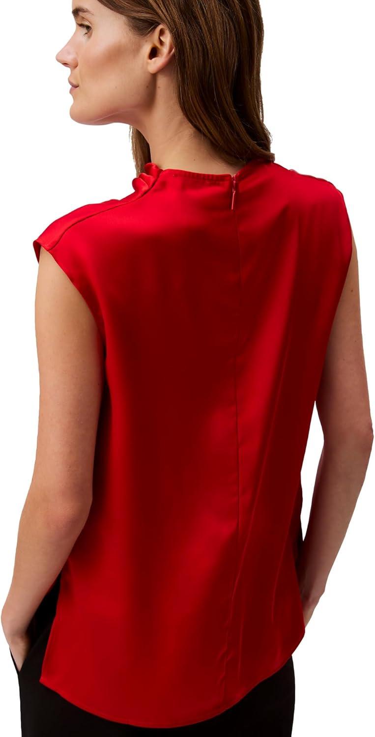 A smooth satin blouse in a classic fit. Styled with short sleeves and a cowl neck. Detailed with a hidden zipper at the back and split at the hem at both sides.