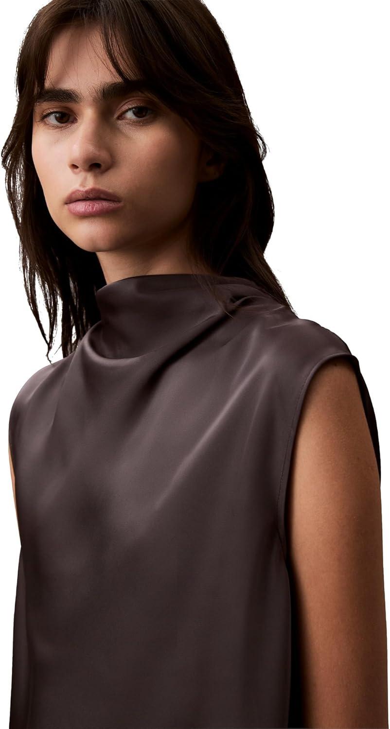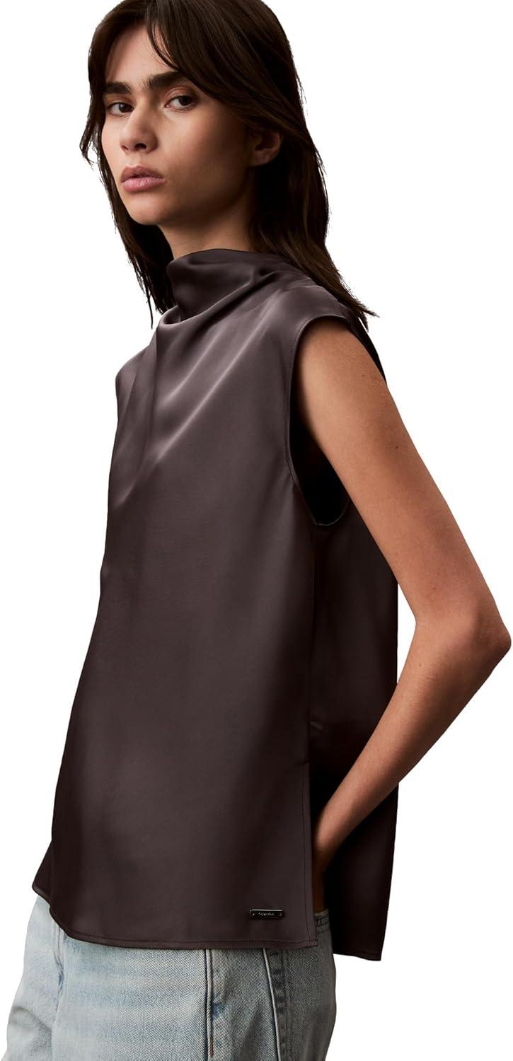 Calvin Klein Jeans Women's Satin Cowl Neck Blouse(Grey)