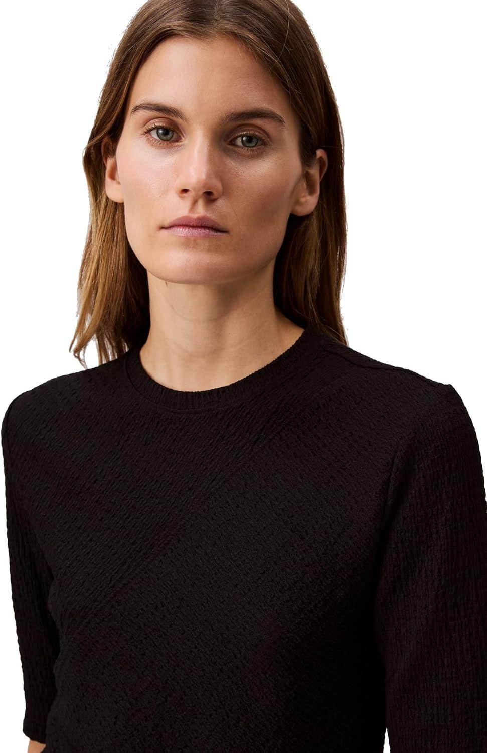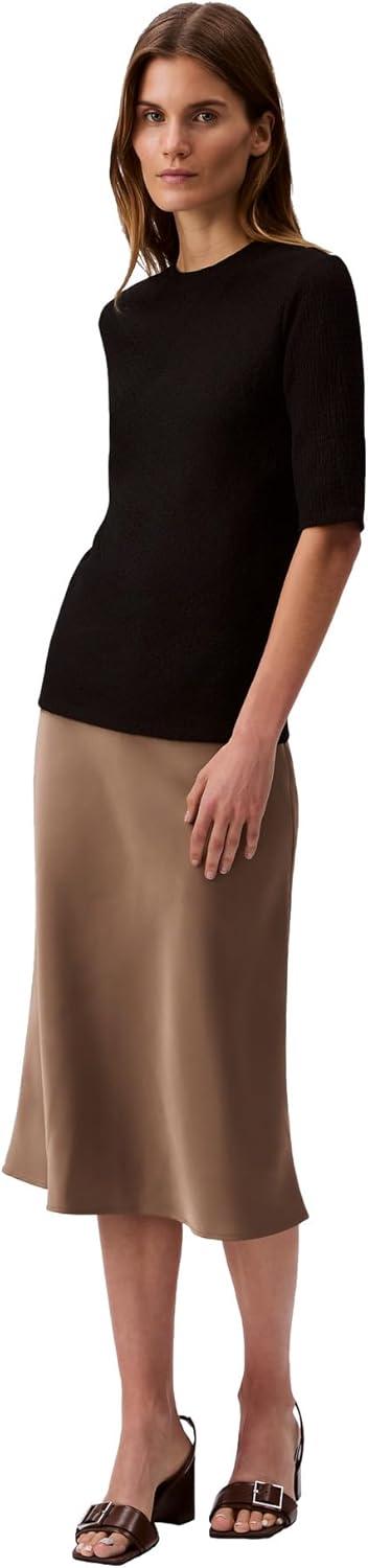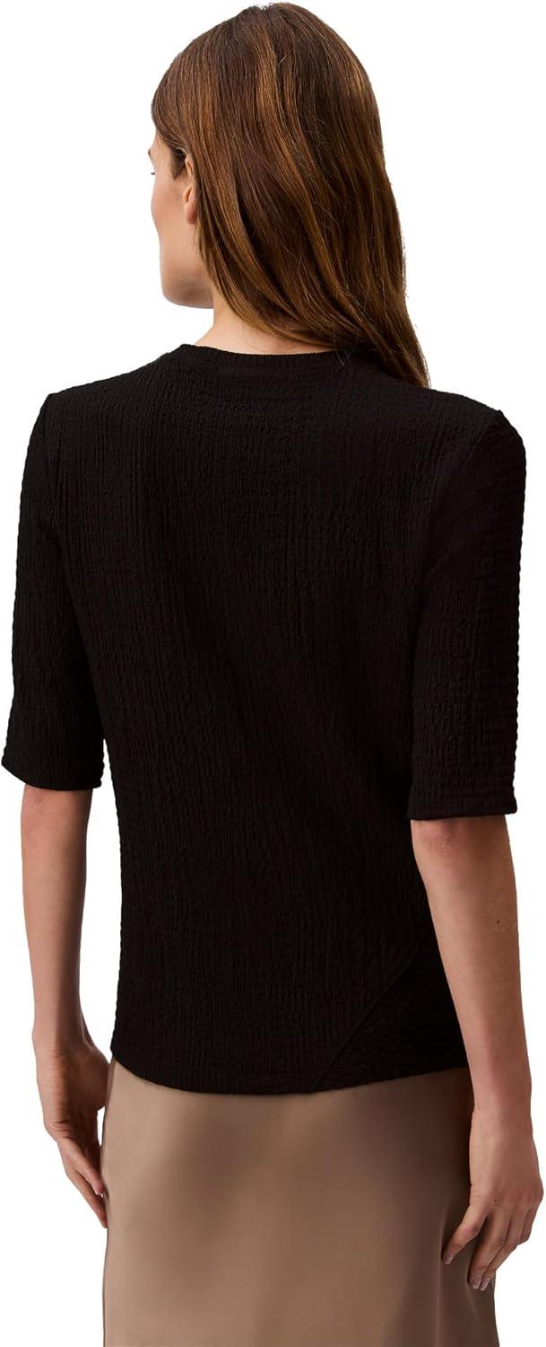 Lightweight in a textured knit, this intricate top features a bias-cut design with straddle stitching. Made in a slim fit with 3/4 length sleeves.