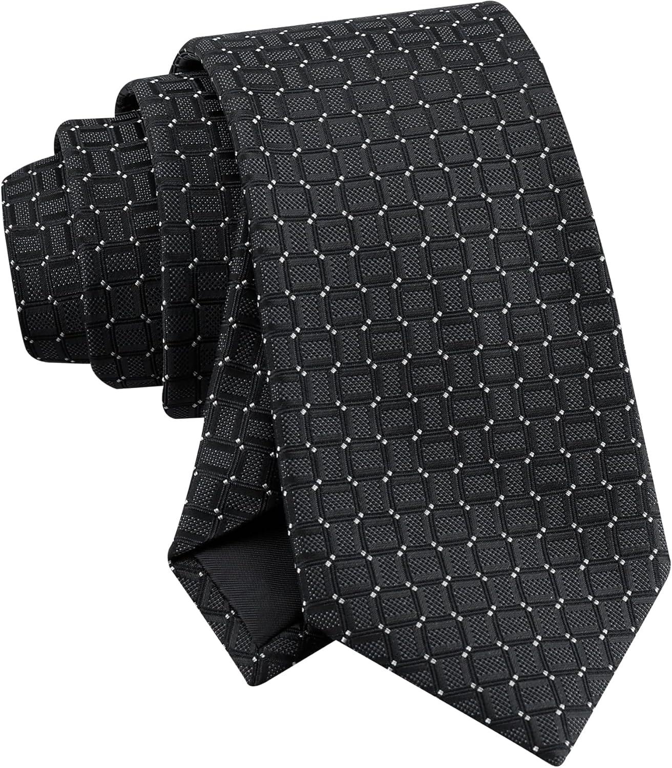 Calvin Klein Men’s Black Solid and Pattern Neckties – Standard and Extra Long Sizes(Black Geo)