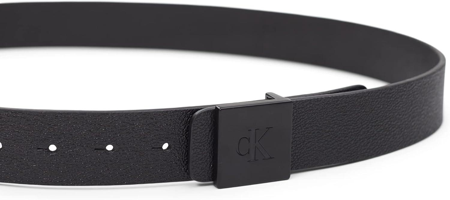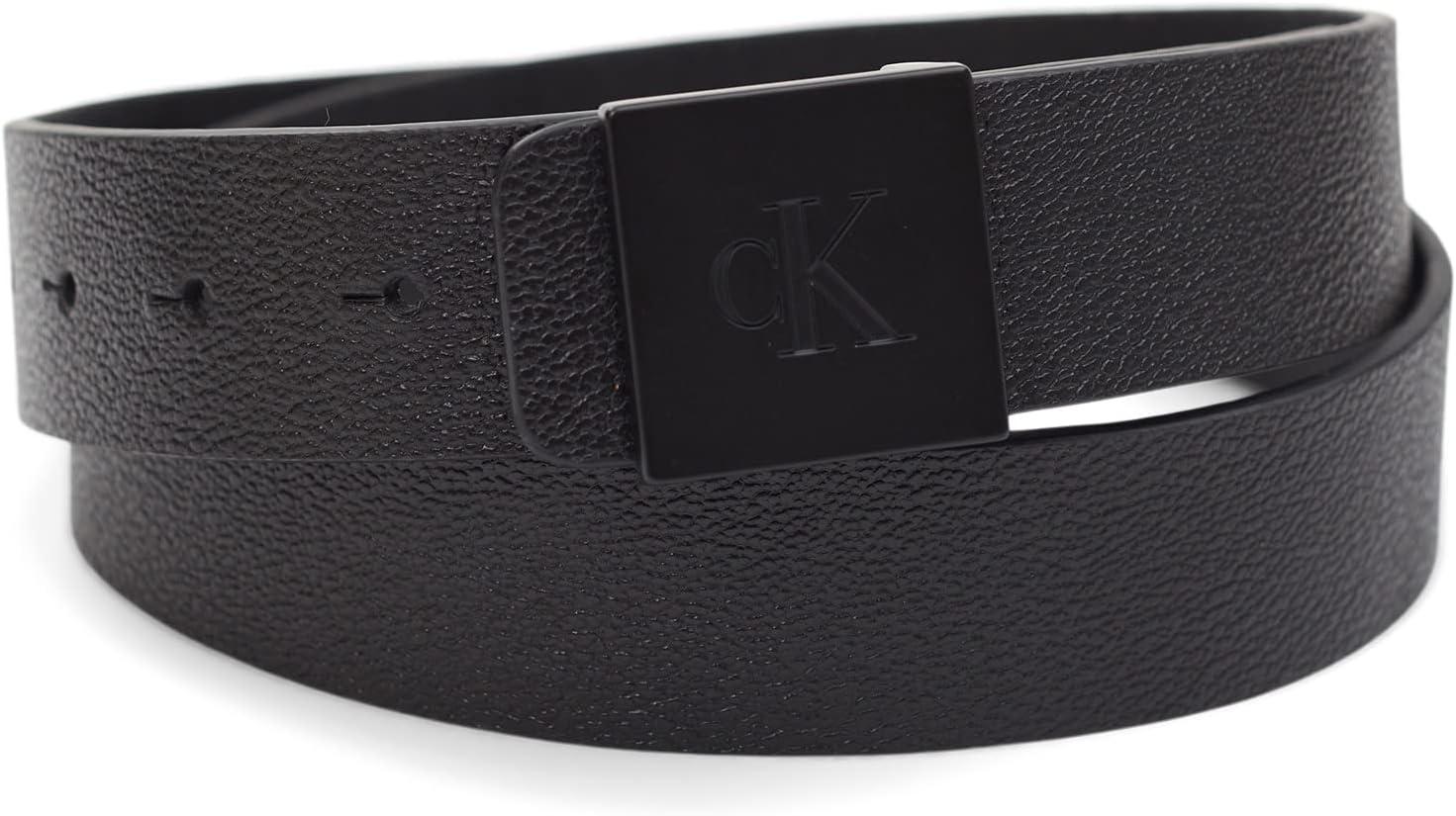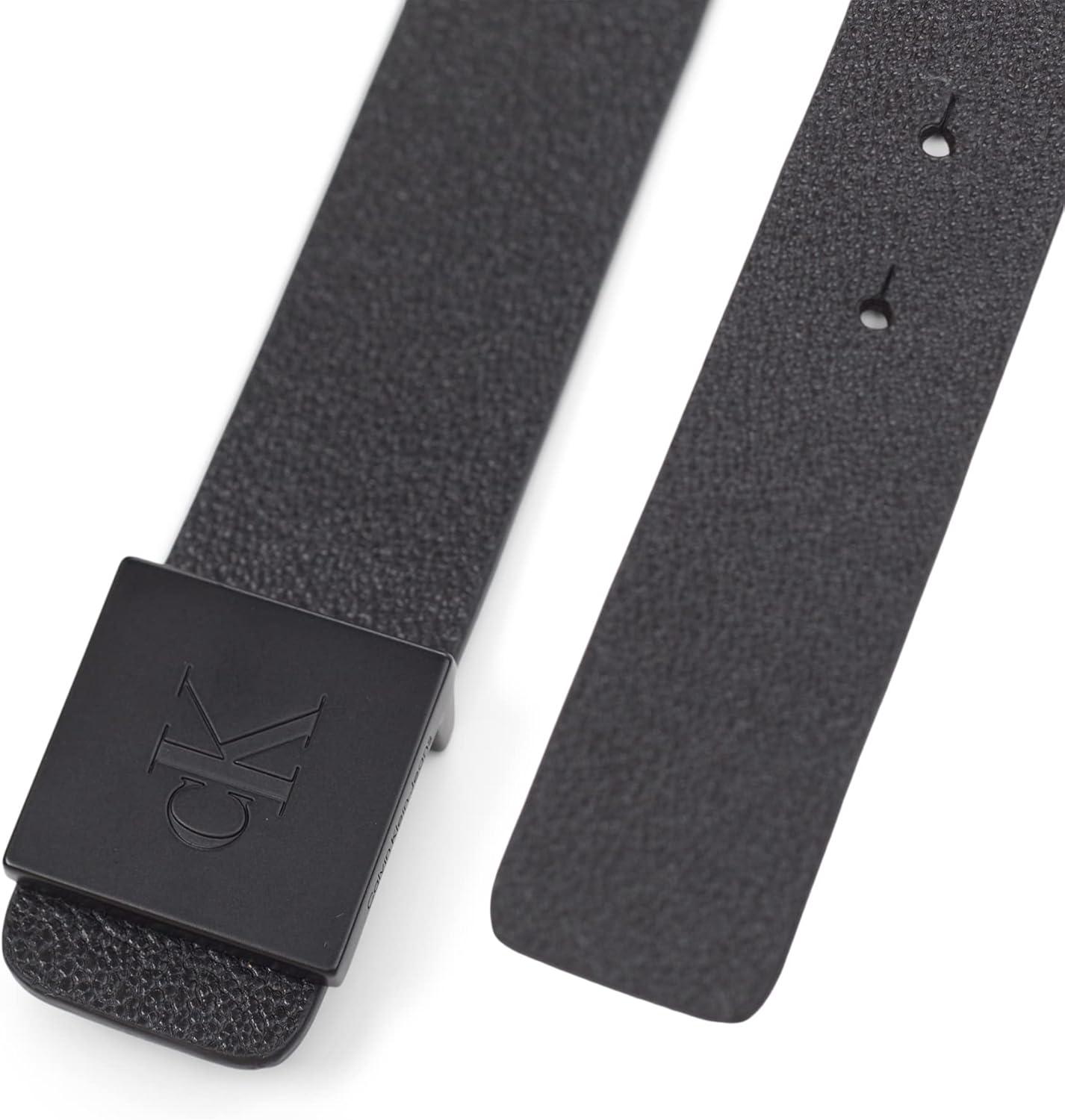 Calvin Klein Men’s Casual Statement Plaque Buckle Belt with Logo Treatment(Black Inlay Plaque)