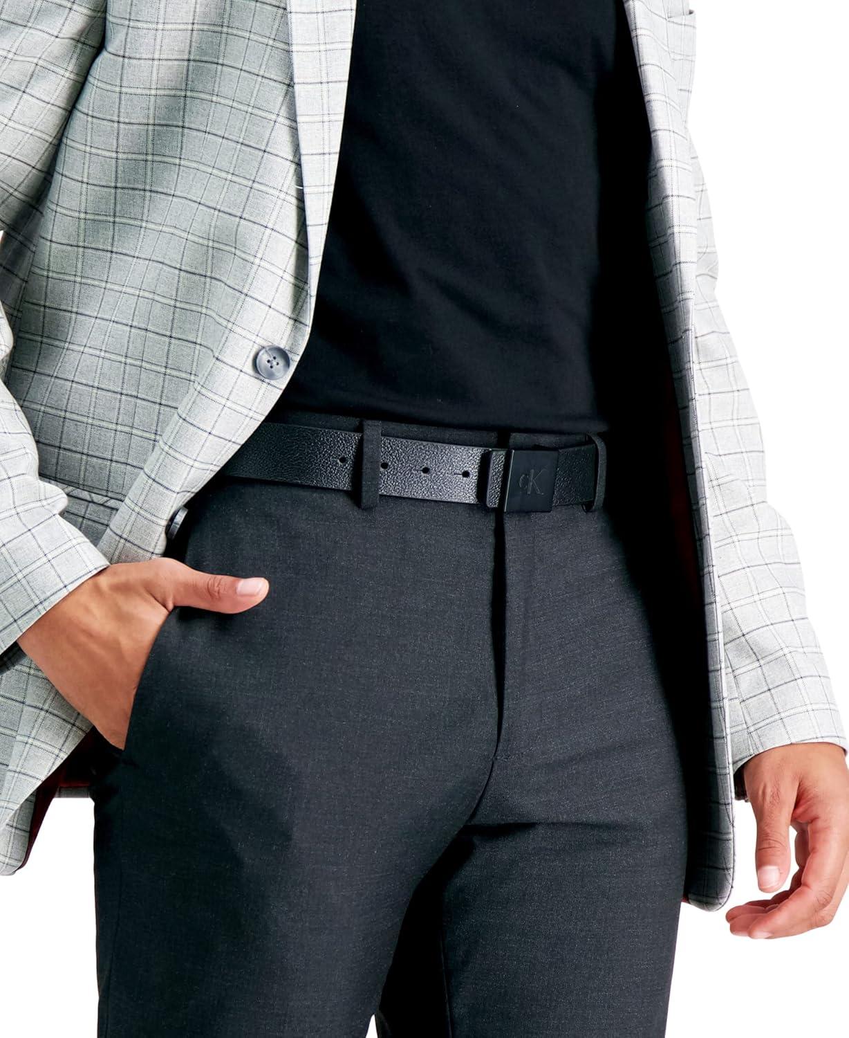 Calvin Klein Men’s Casual Statement Plaque Buckle Belt with Logo Treatment(Black Square)