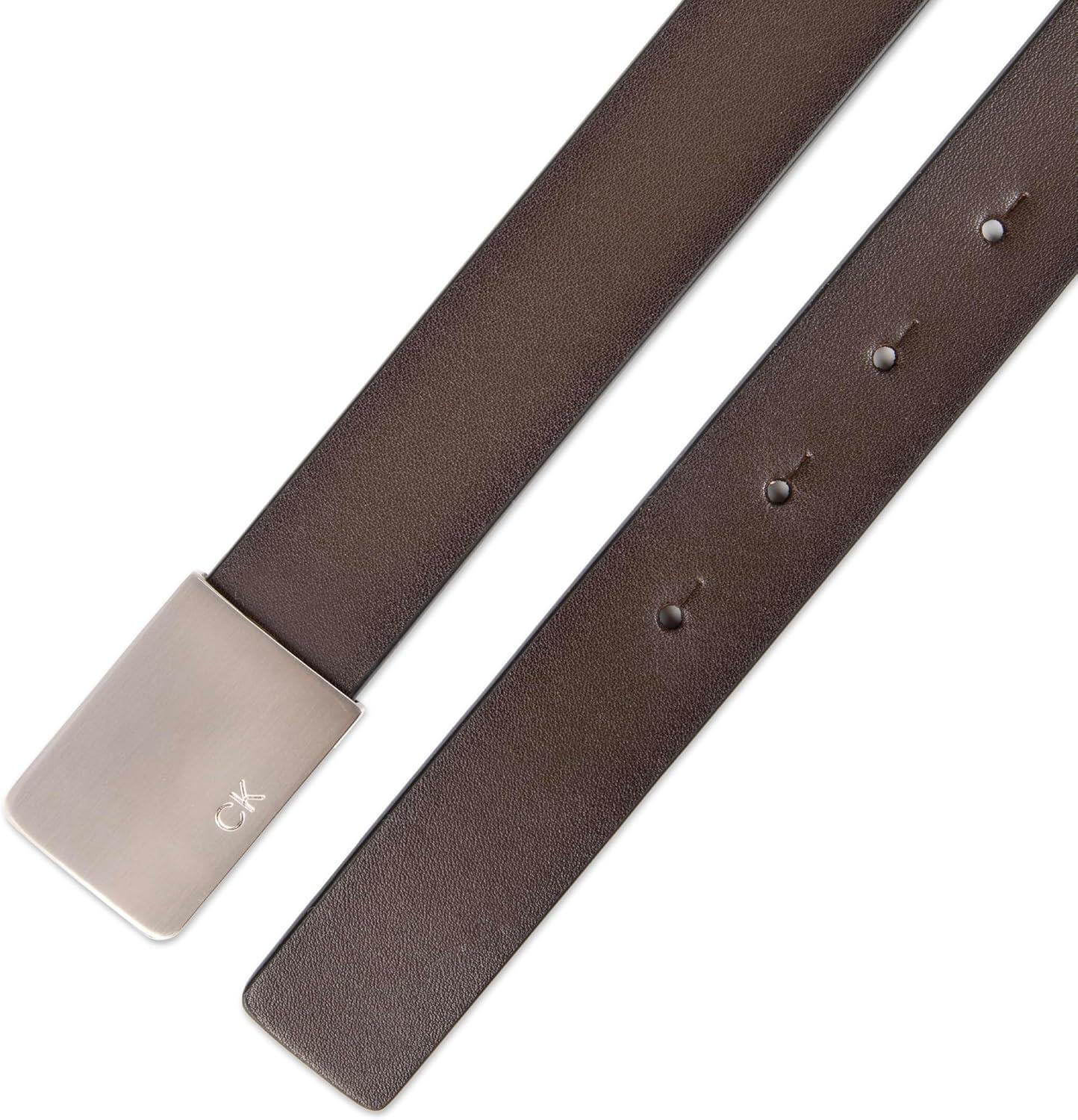 Calvin Klein Men's Casual Statement Plaque Buckle Belt with Logo Treatment(Dark Brown Plaque)