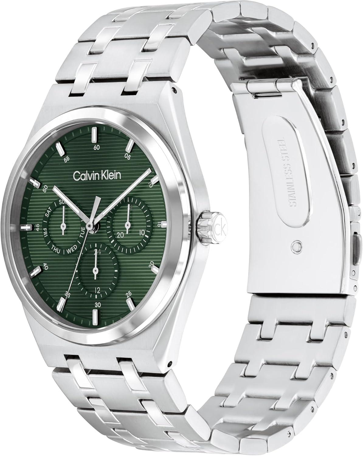 Calvin Klein Men’s CK Motion Stainless Steel Watch – 39mm Slim Case, Multifunction, Link Bracelet, Versatile Everyday Style- Gift for Him(Silver)
