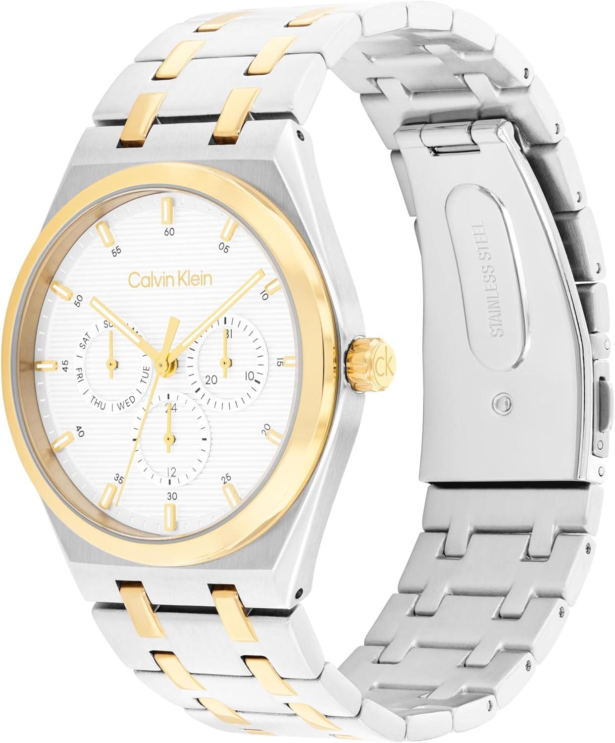 Calvin Klein Men’s CK Motion Stainless Steel Watch - 39mm Slim Case, Multifunction, Link Bracelet, Versatile Everyday Style- Gift for Him(Two Tone)
