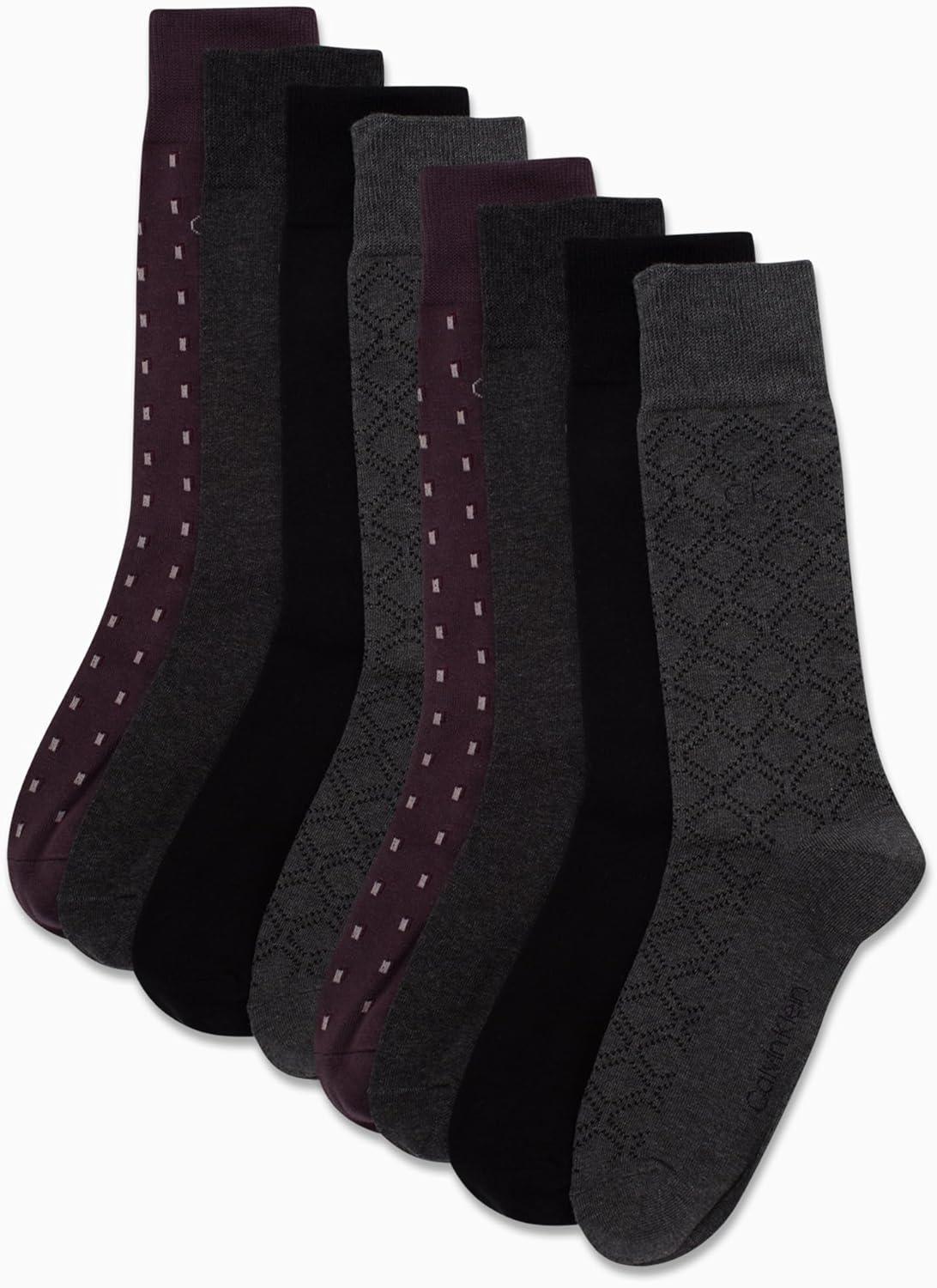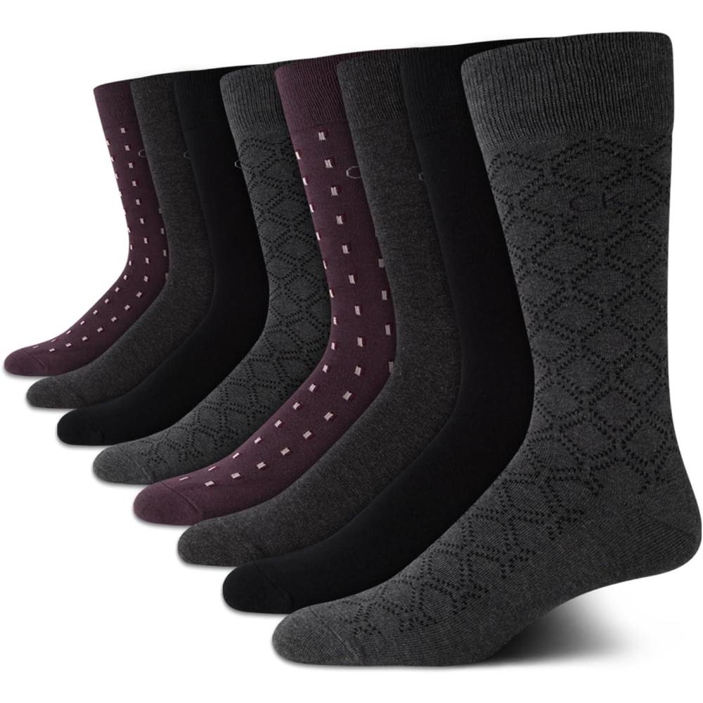 Calvin Klein Men’s Cotton Blend Dress Crew Socks (8-Pack)(Grey/Black)