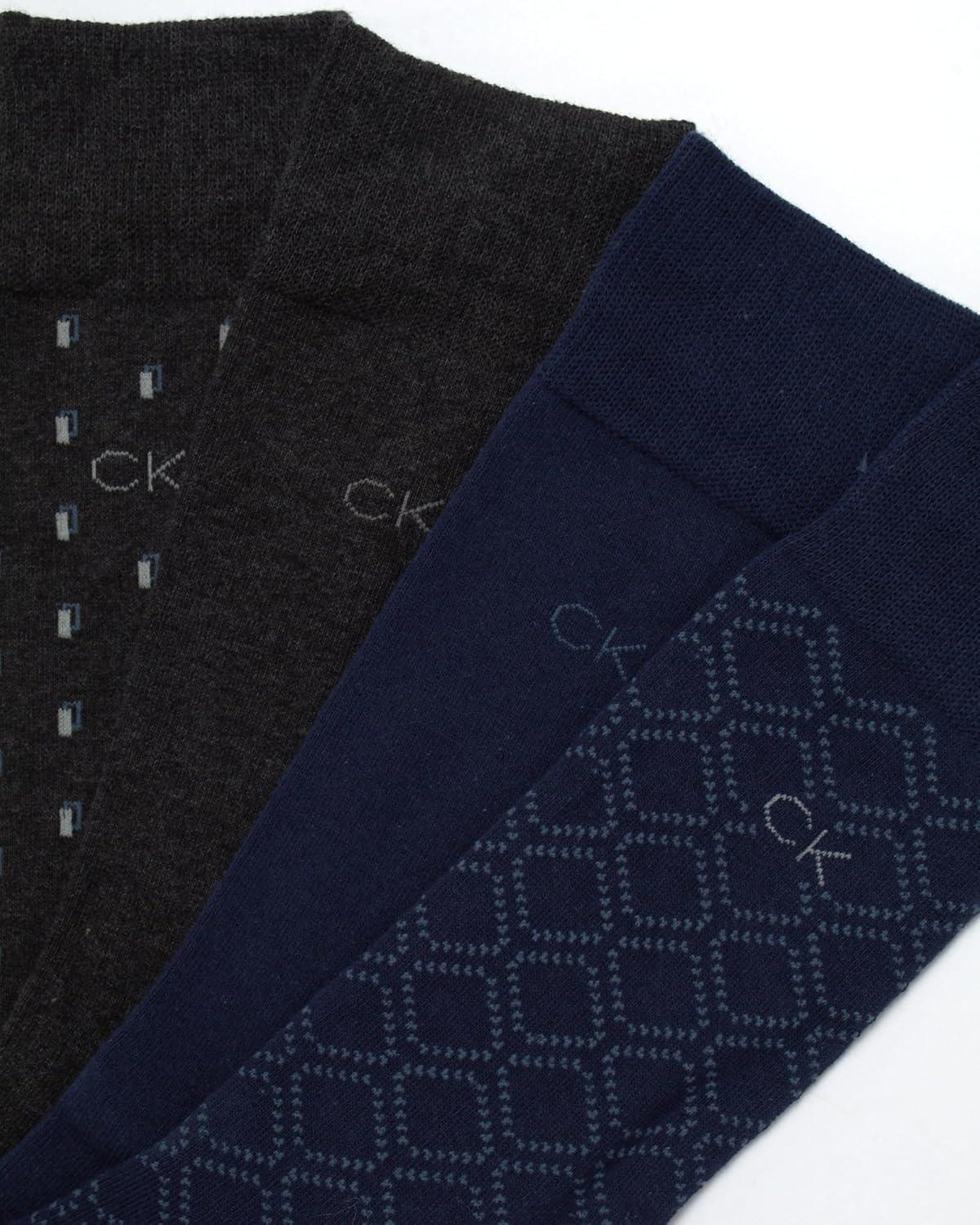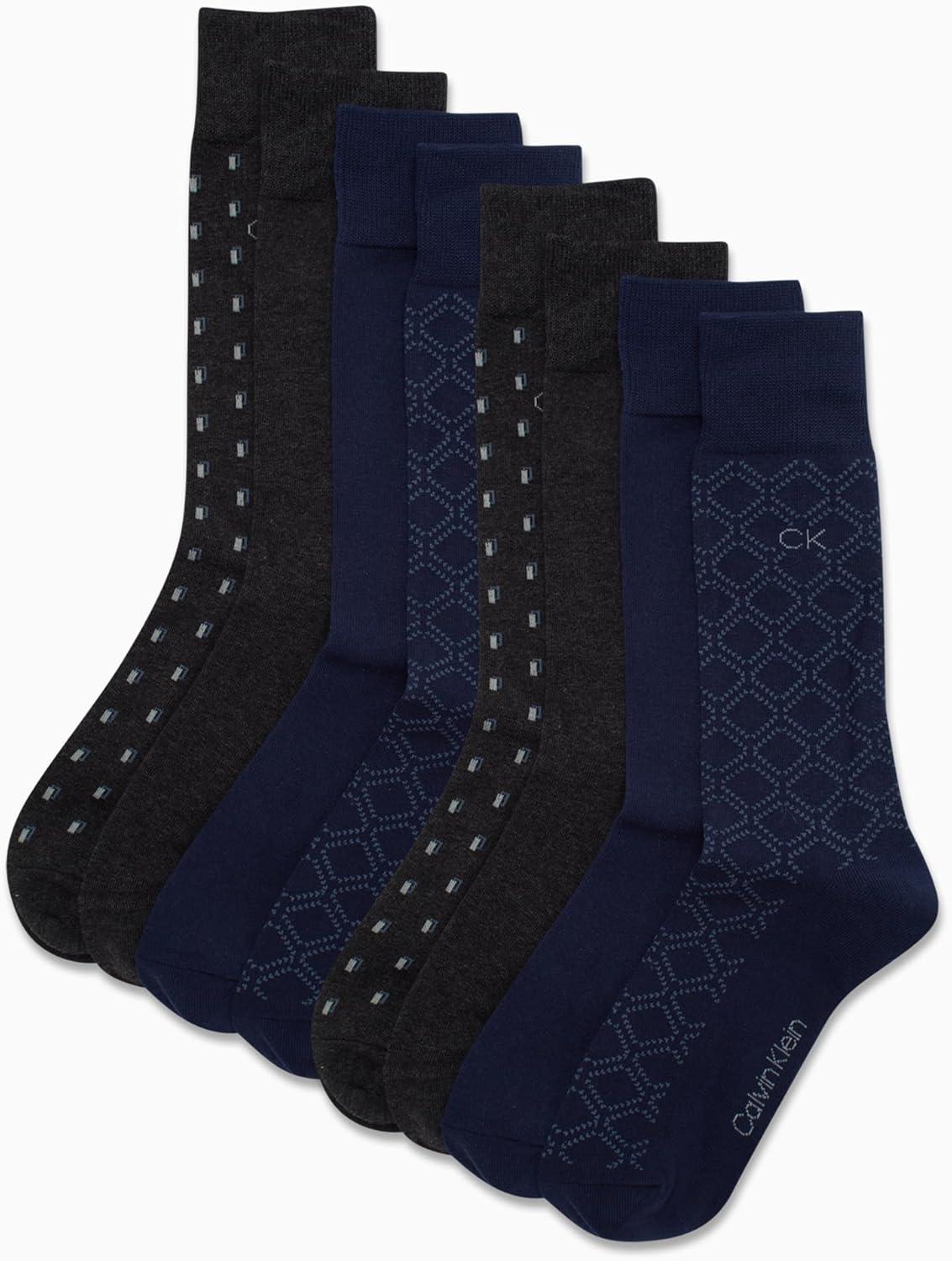 Calvin Klein Men’s Cotton Blend Dress Crew Socks (8-Pack)(Peacoat Assorted)