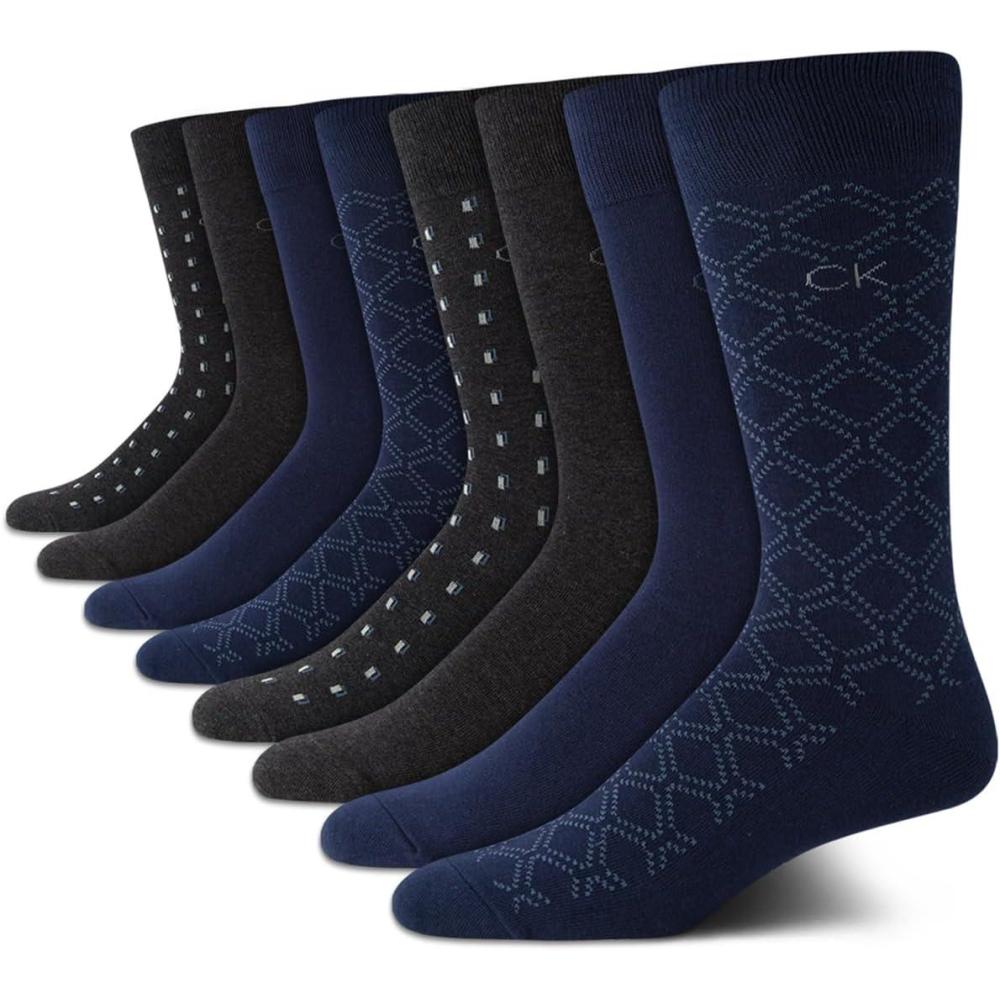 Calvin Klein Men's Cotton Blend Dress Crew Socks (8-Pack)(Peacoat Assorted)