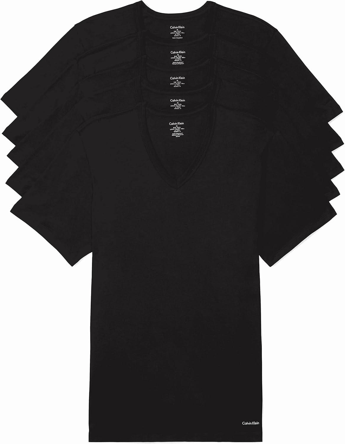 Calvin Klein Men's Cotton Classic 5-Pack Slim Undershirts(5 Black V-neck)