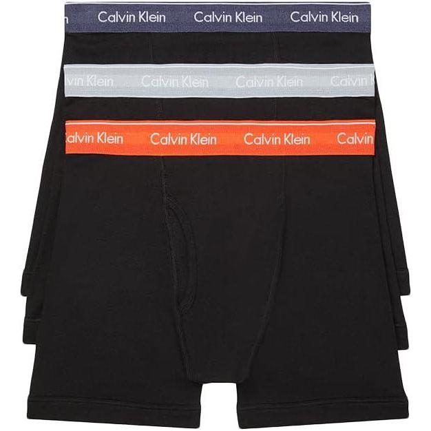 Calvin Klein Men’s Cotton Classics 3-Pack Boxer Brief(Black Body/Dark Blue Heather/Inferno/Overcast)