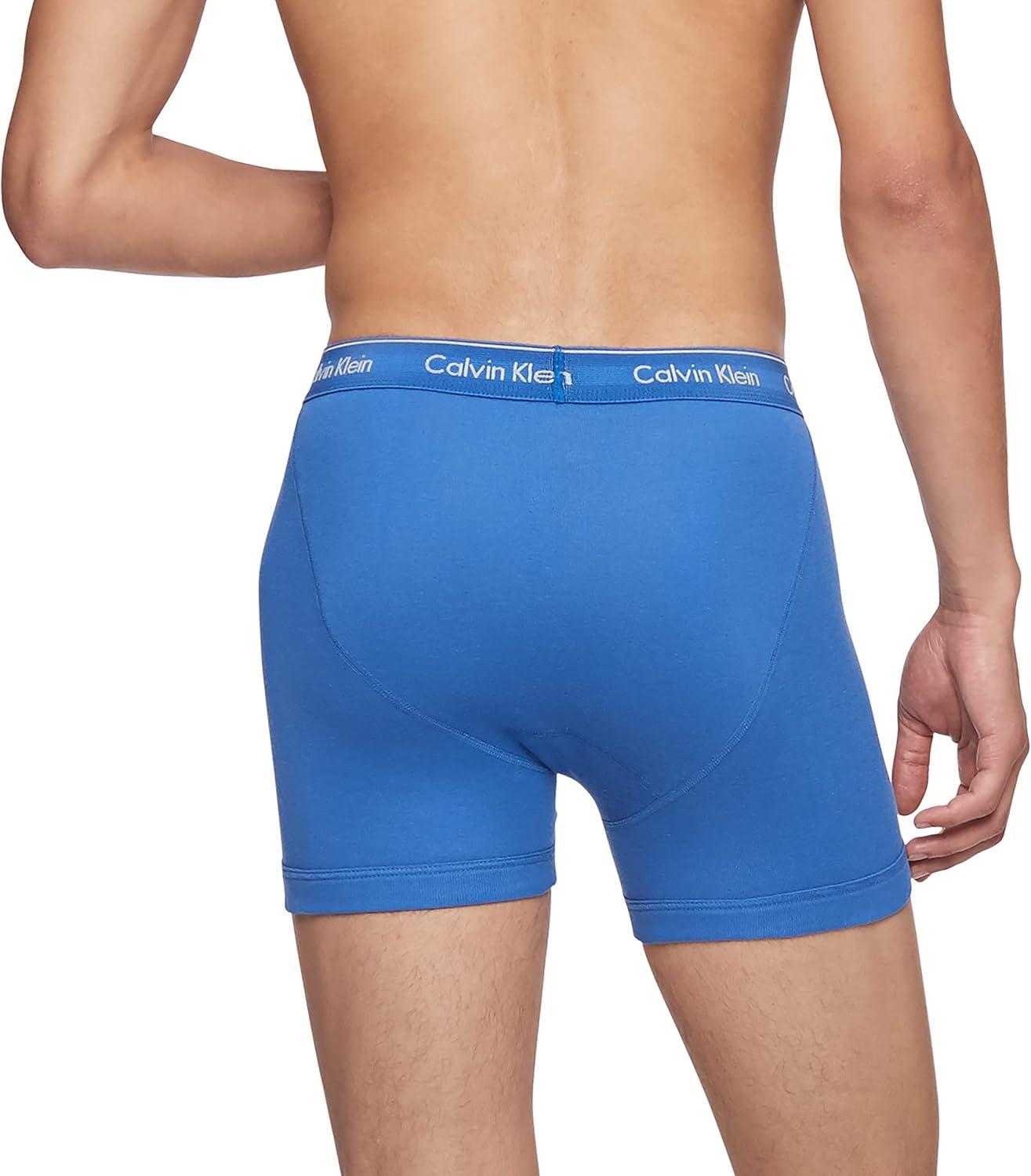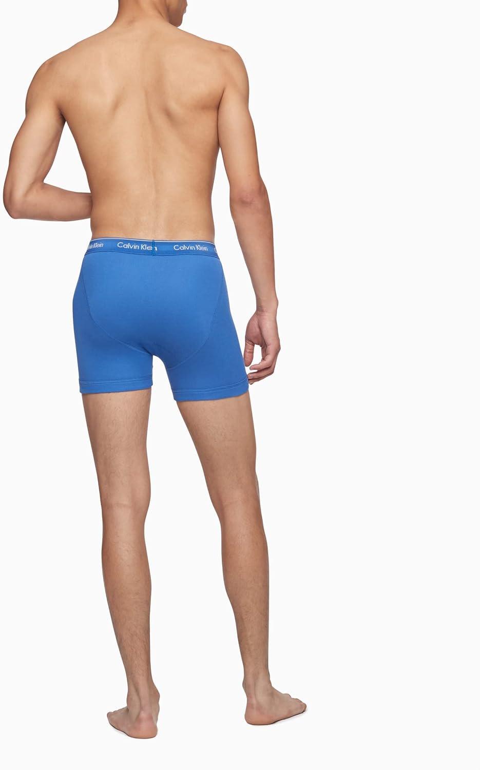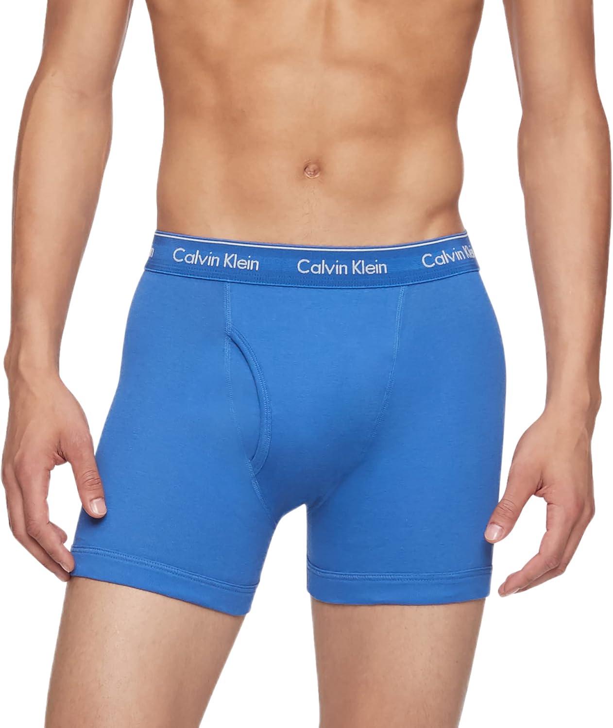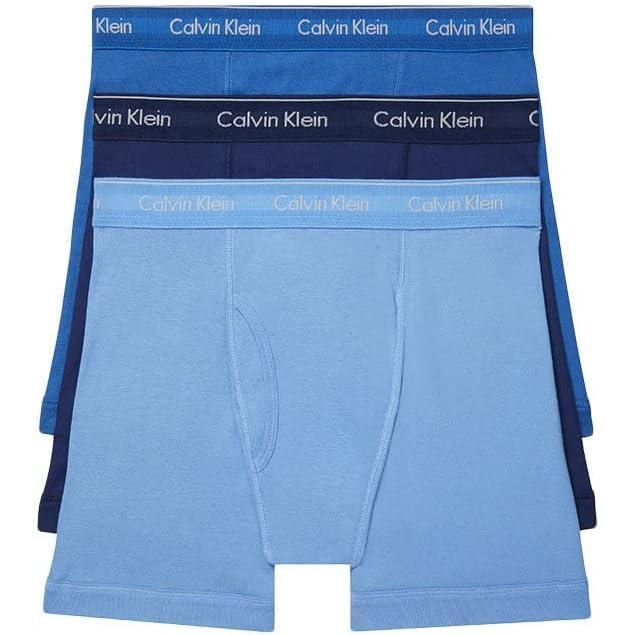 Calvin Klein Men’s Cotton Classics 3-Pack Boxer Brief(Medieval Blue Minnow Blue Bay)