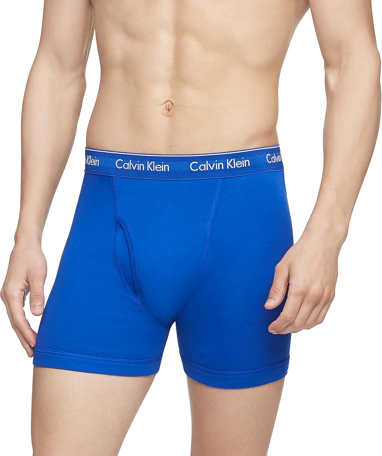 Calvin Klein Men’s Cotton Classics 3-Pack Boxer Brief(Monument/Periwinkle/Fire Brick)