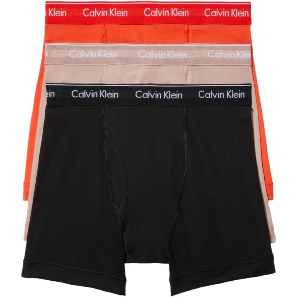 Calvin Klein Men’s Cotton Classics 3-Pack Boxer Brief(Summer Taupe Fiesta Black)
