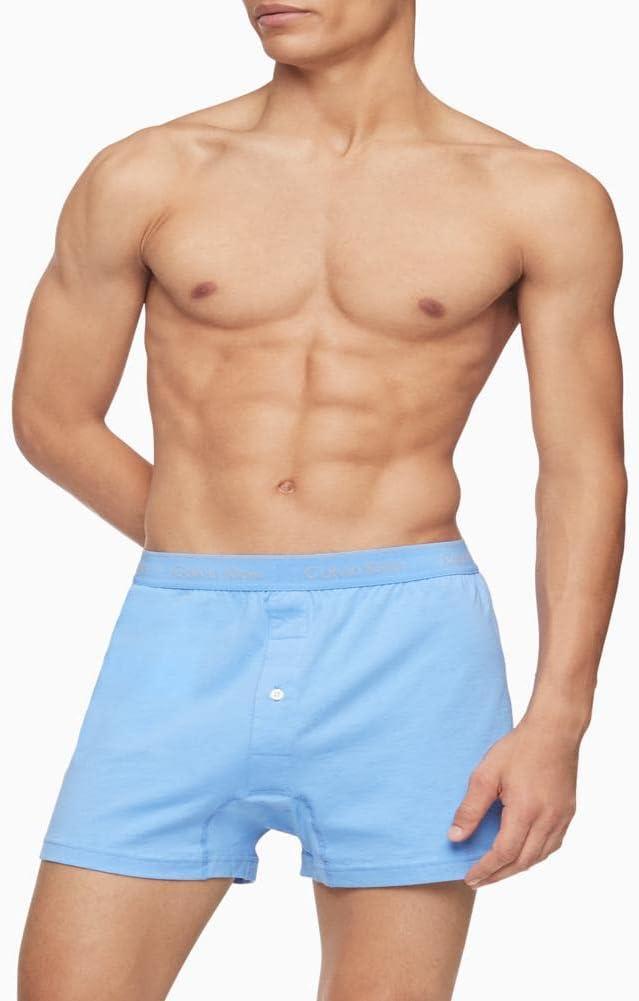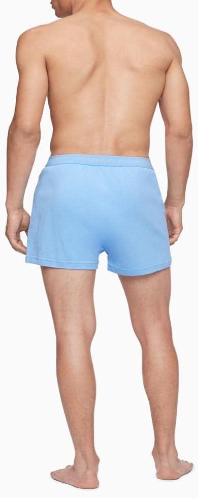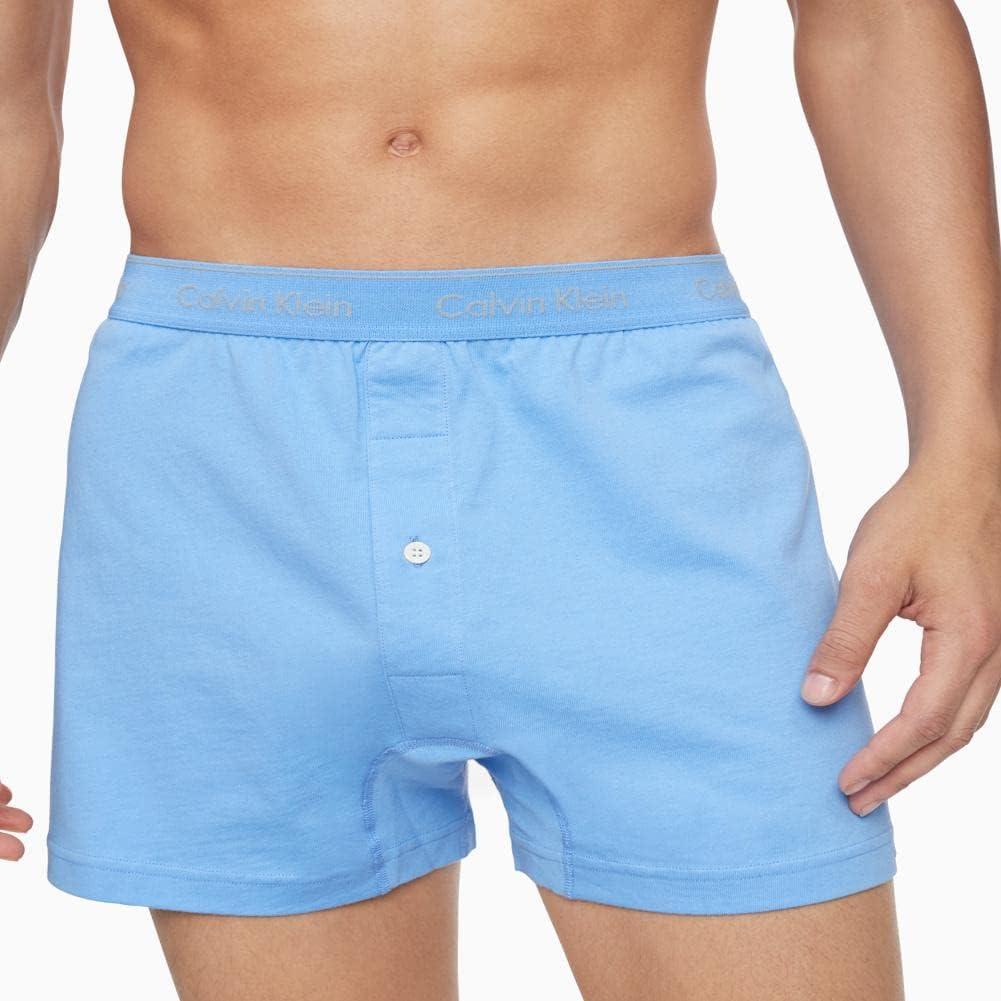 Calvin Klein Men’s Cotton Classics 3-Pack Knit Boxer(Blue Bay Minnow Medieval Blue)