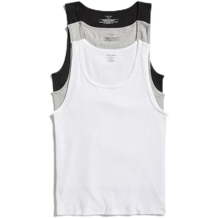 Calvin Klein Men's Cotton Classics 3-Pack Tanks(Black White Grey Heather)