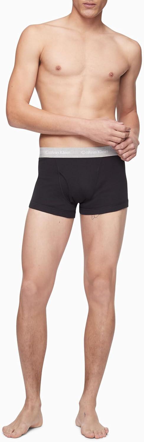 Calvin Klein Men’s Cotton Classics 3-Pack Trunk(Black Bodies W/ Classic Navy Sage Meadow Grey Heather)