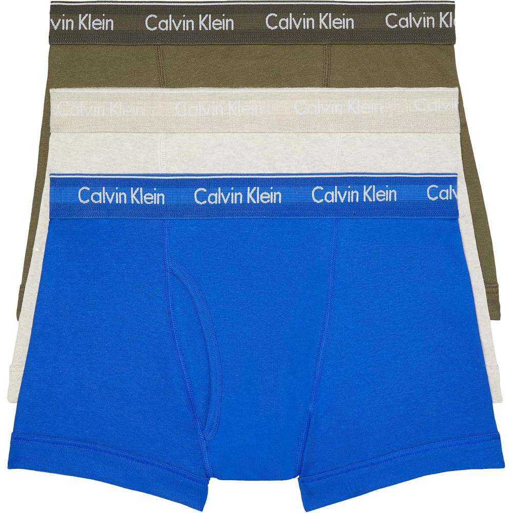 Calvin Klein Men’s Cotton Classics 3-Pack Trunk(Royalty Army Green Flaz Heather)