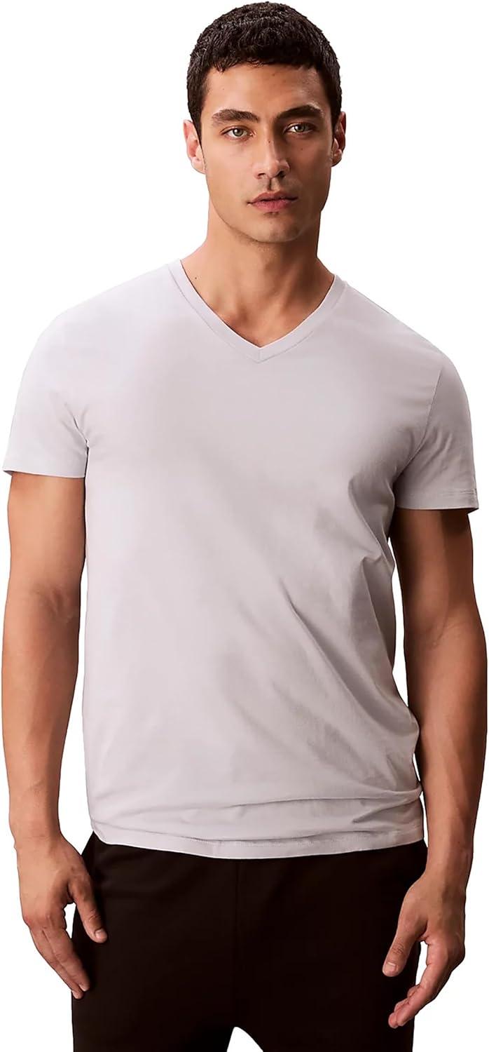 Calvin Klein Men’s Cotton Classics 3-Pack Undershirts(Black Grey Heather White Vneck)