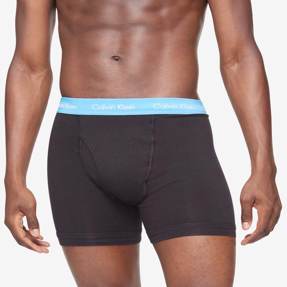 Calvin Klein Men’s Cotton Stretch 3-Pack Boxer Brief(Black Bodies W/ Storm Cloud Storm Heather Signature Blue Wbs)