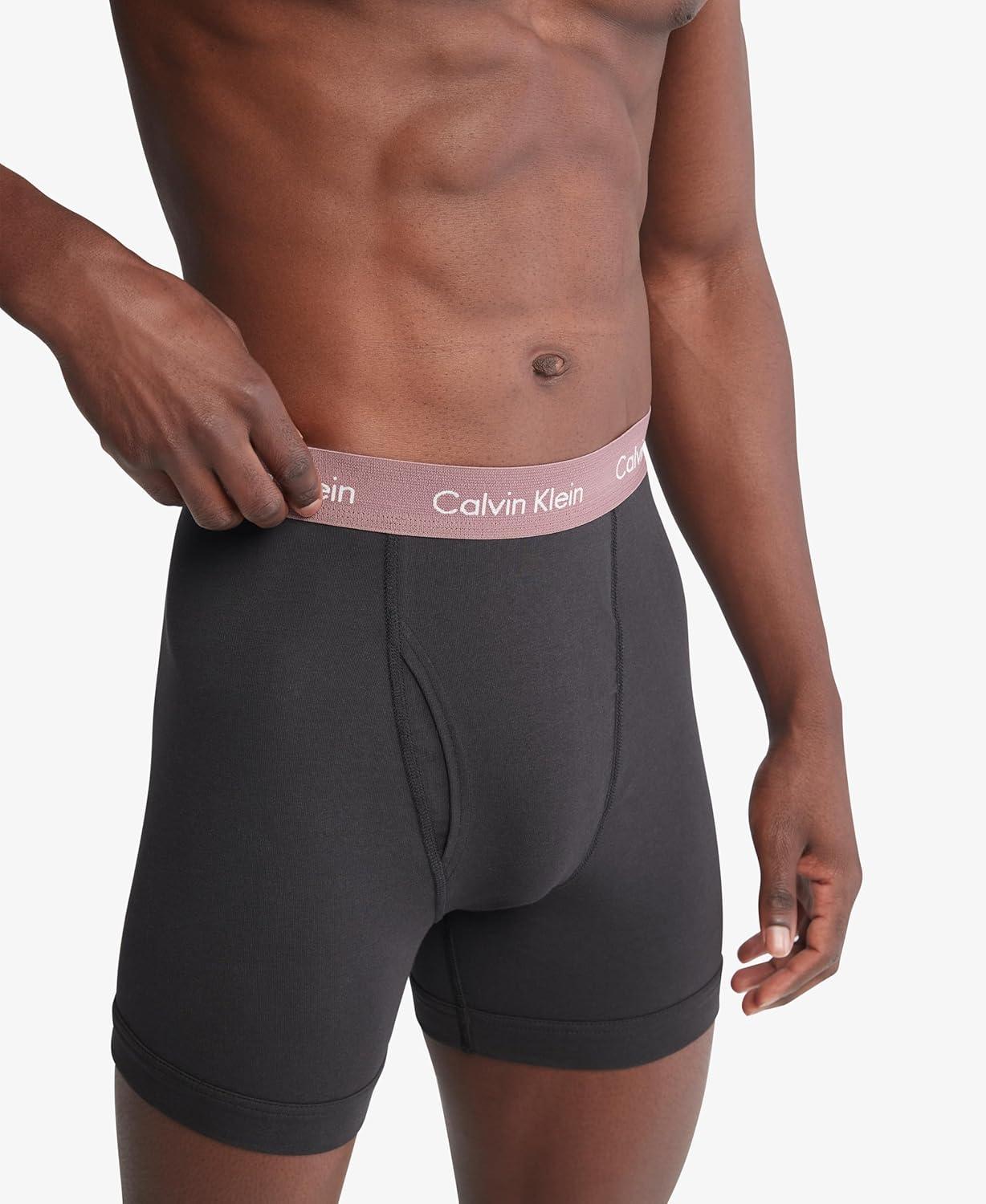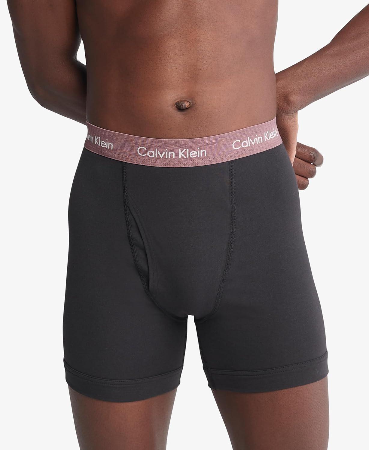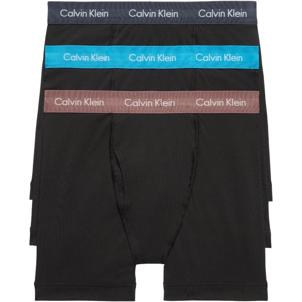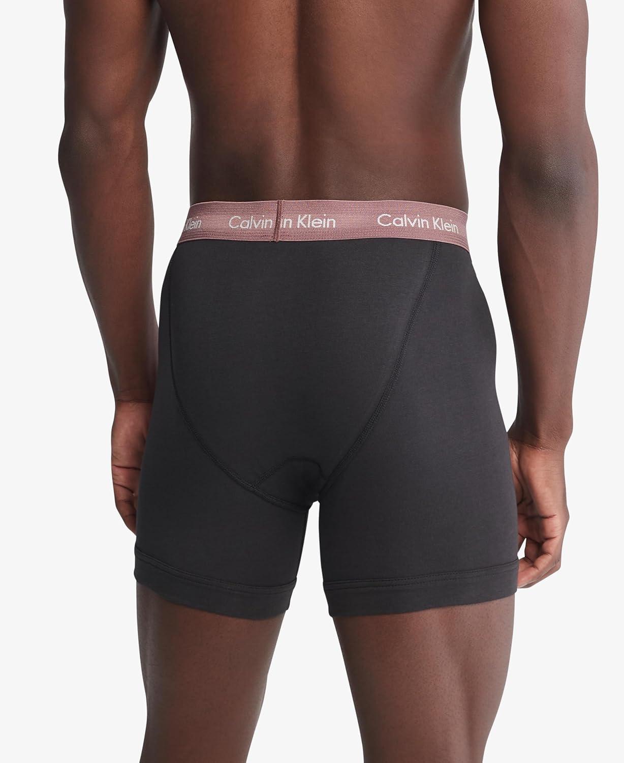 Calvin Klein Men’s Cotton Stretch 3-Pack Boxer Brief(Black W/ Capri Rose Speakeasy Vivid Blue Logos)