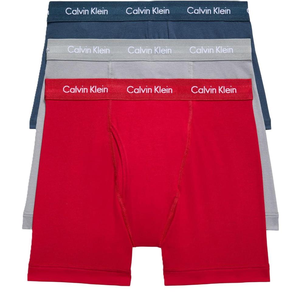 Calvin Klein Men’s Cotton Stretch 3-Pack Boxer Brief(Convoy Juneberry Navy Stone)