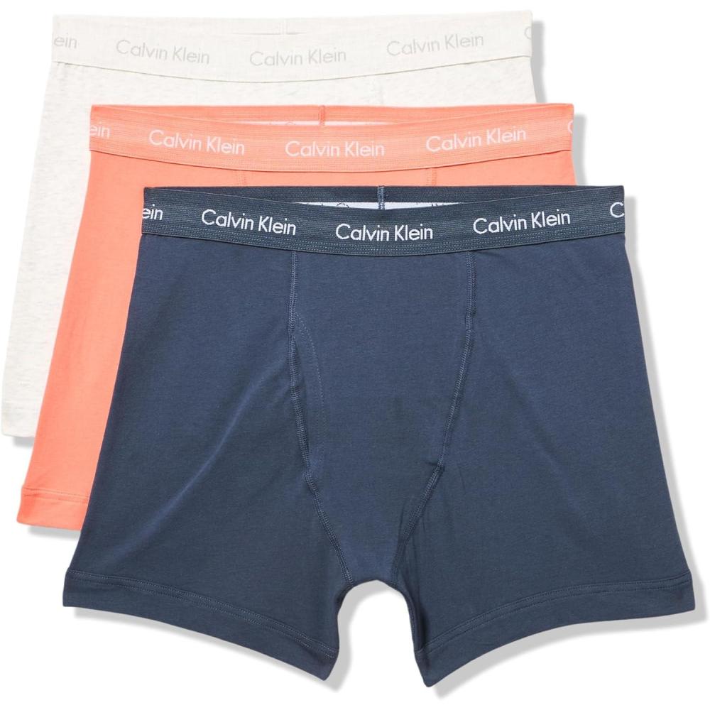 Calvin Klein Men’s Cotton Stretch 3-Pack Boxer Brief(Ink Coral Pop Snow Heather)