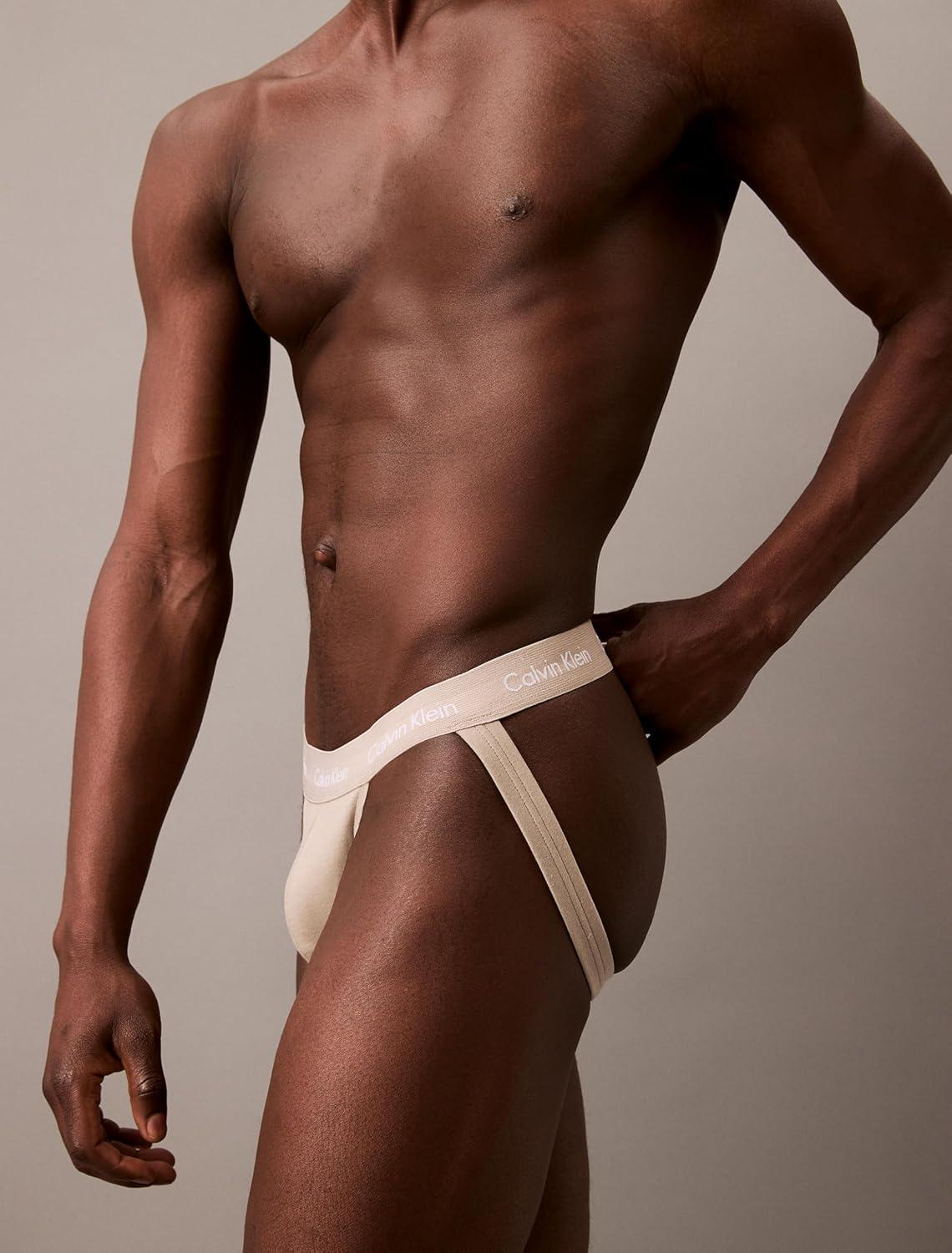 A Calvin Klein icon. The essential designer jock strap reinvented in extra-soft cotton stretch with a low rise fit. Made with wicking to keep you cool and dry. Designed with the original Calvin Klein logo waistband, this is a sporty look that feels sexy everyday. For the minimalist.