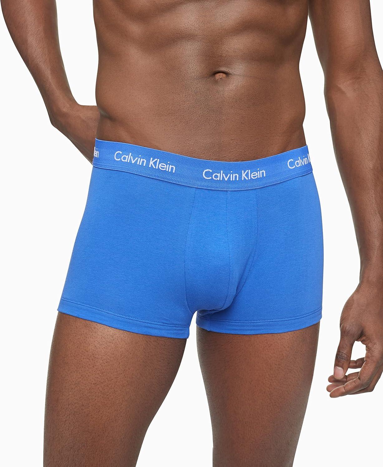 Calvin Klein Men’s Cotton Stretch 3-Pack Low Rise Trunks(1 Black 1 Blue Shadow 1 Cobalt Water)
