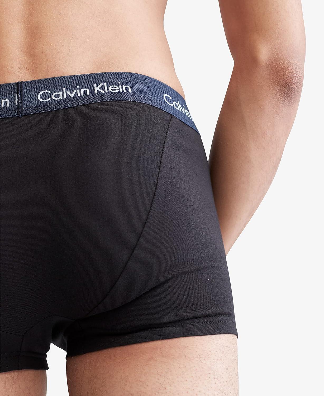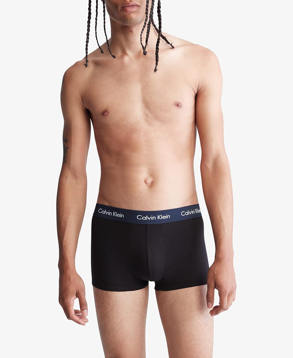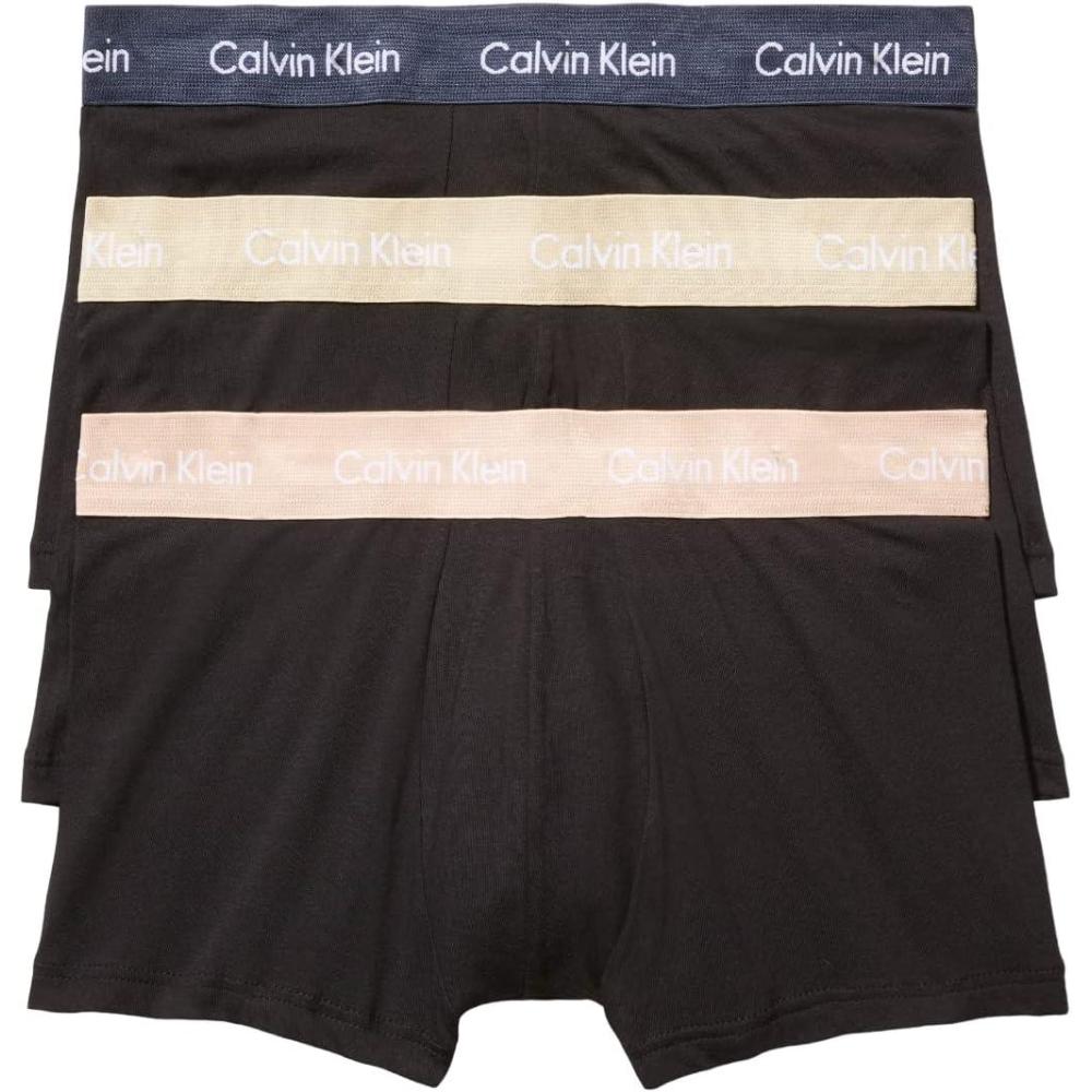 Calvin Klein Men’s Cotton Stretch 3-Pack Low Rise Trunks(Black Bodies W/ Storm Cloud Storm Heather Signature Blue Wbs)