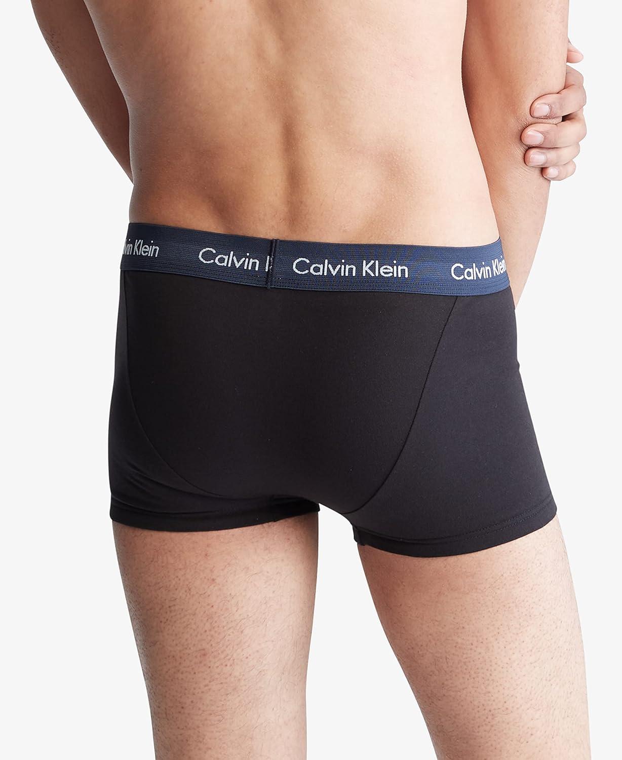 An updated, 3 pack of cotton stretch low rise trunks featuring an elastic waistband with an iconic Calvin Klein logo. Stretch fabric provides comfort and shape retention.