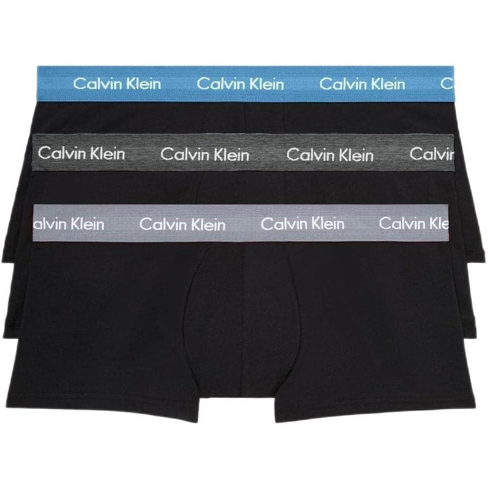 Calvin Klein Men’s Cotton Stretch 3-Pack Low Rise Trunks(Black Bodies W/ Storm Cloud Storm Heather Signature Blue Wbs)
