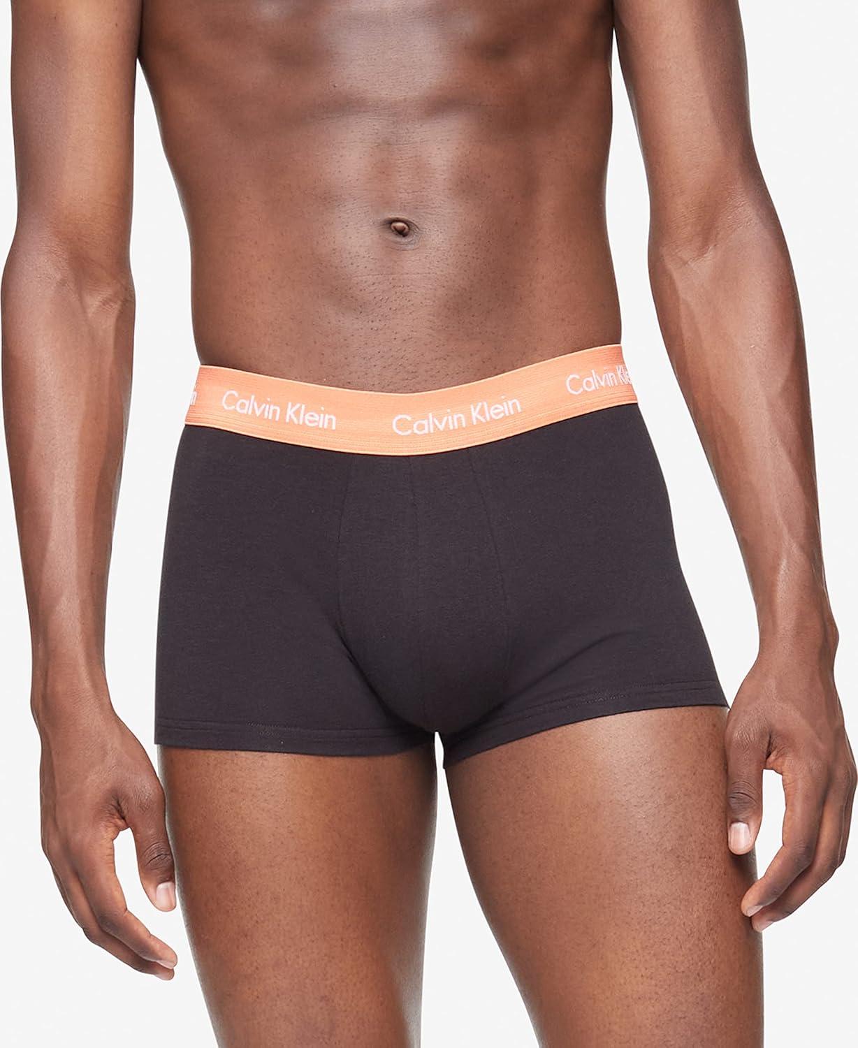 Calvin Klein Men’s Cotton Stretch 3-Pack Low Rise Trunks(Black Bodies W/ Work Blue Ocean Hue Turned Mango Wbs)