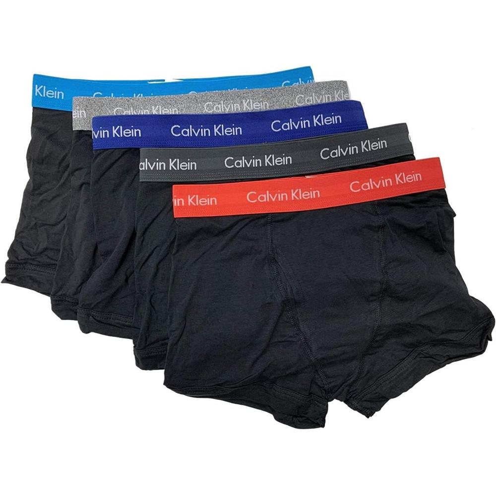 Calvin Klein Men’s Cotton Stretch 3-Pack Low Rise Trunks(Black W/ Capri Rose Speakeasy Vivid Blue Logos)