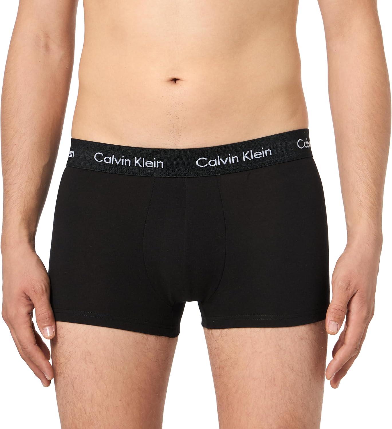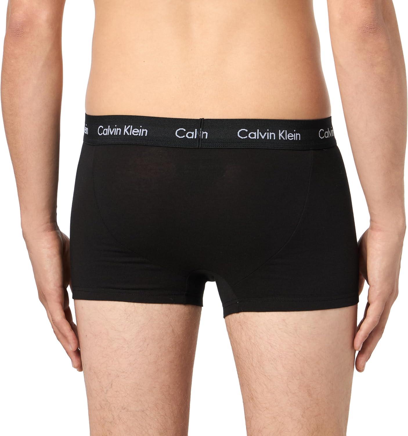 Calvin Klein Men’s Cotton Stretch 3-Pack Low Rise Trunks(Black W/ New Navy Vintage Khaki Troposphere Logos)