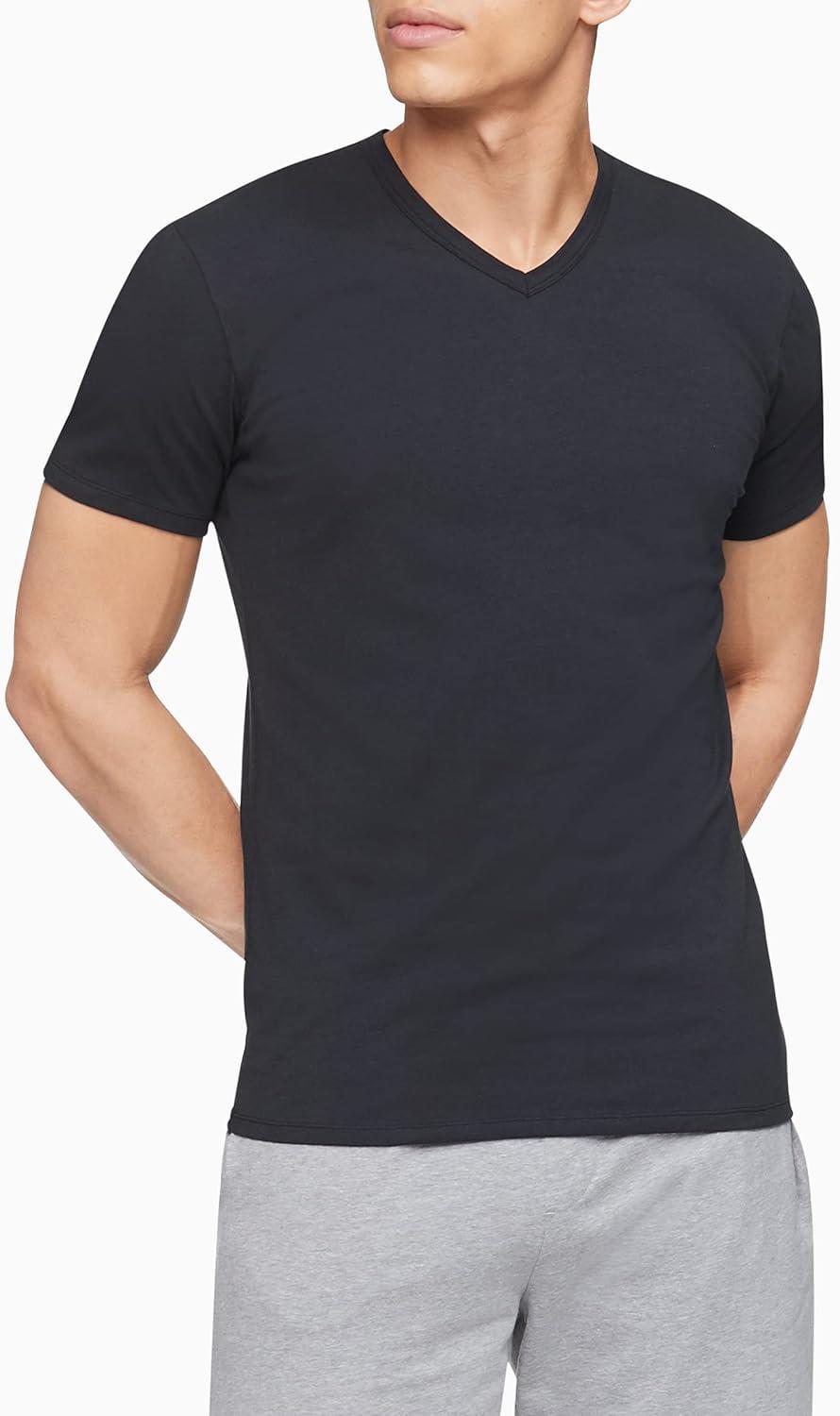 Calvin Klein Men’s Cotton Stretch 3-Pack Undershirts(3 Classic Black Vneck)