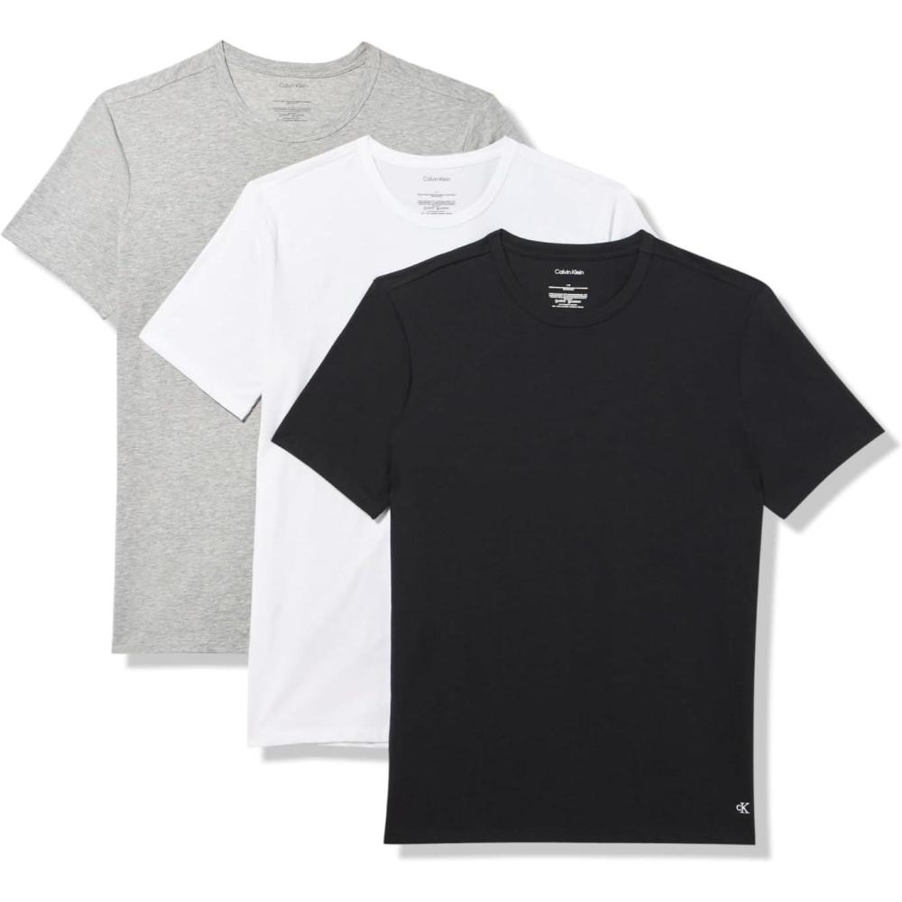 Calvin Klein Men’s Cotton Stretch 3-Pack Undershirts(Black Grey Heather White Crewneck)