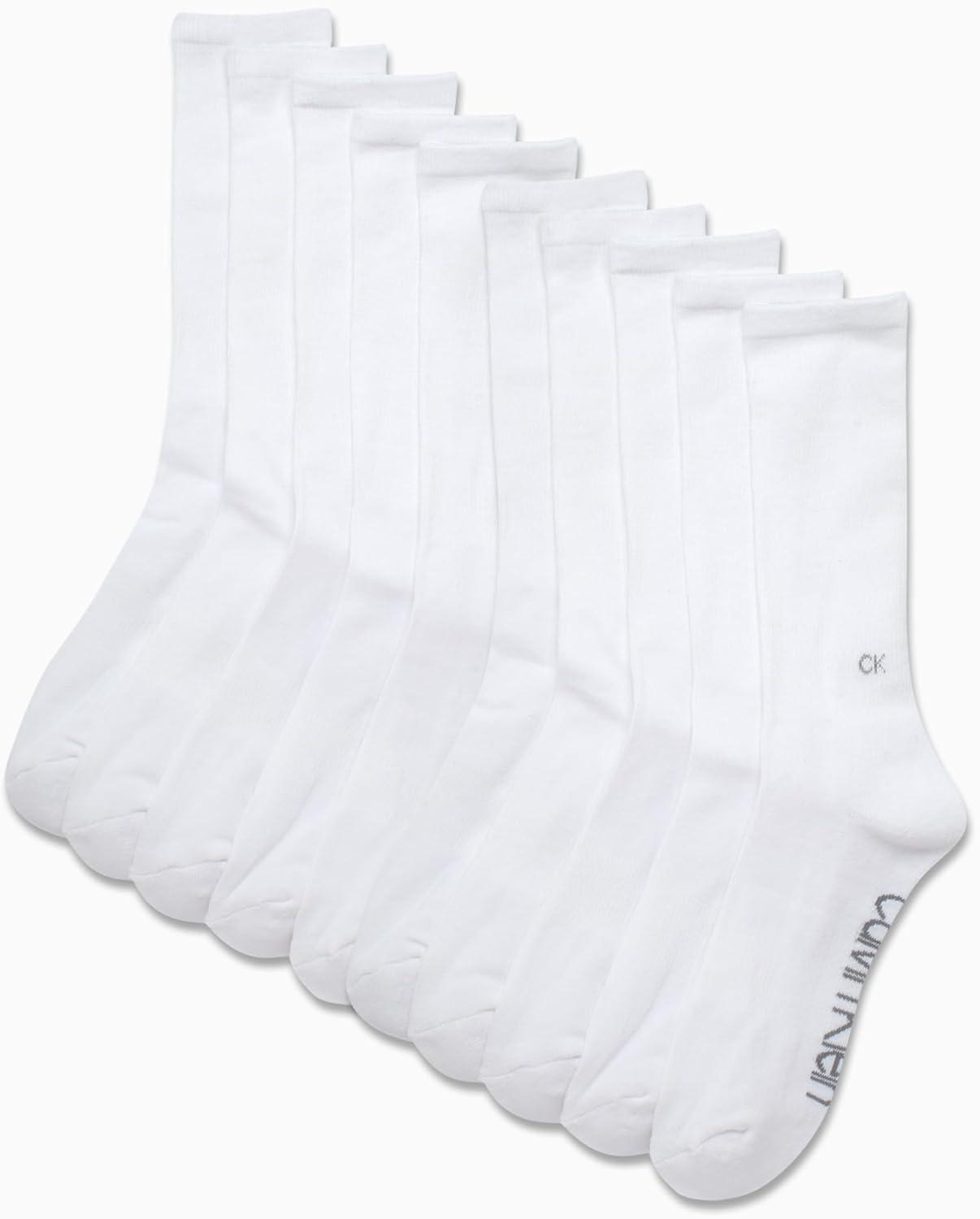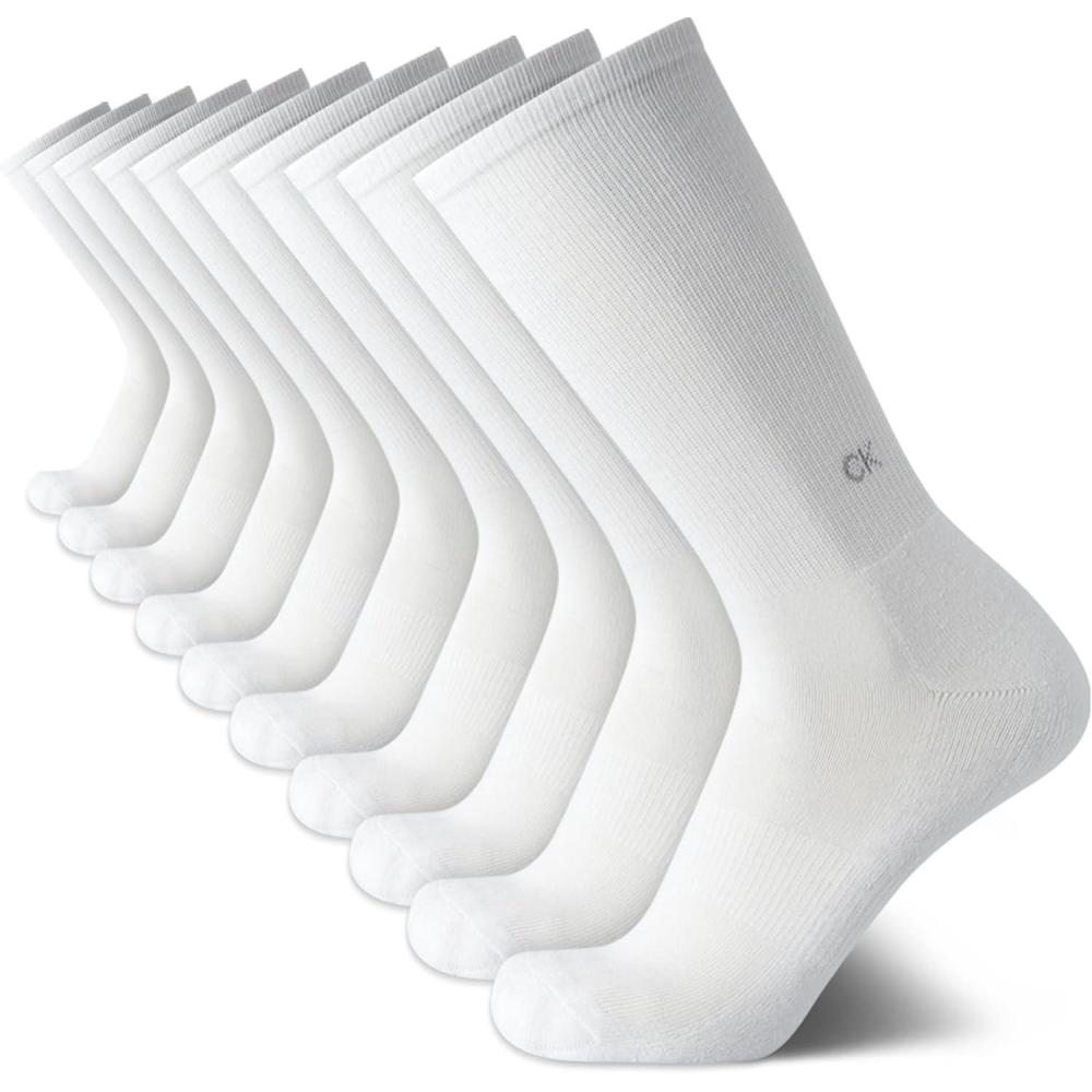 Calvin Klein Mens Crew Socks - 10 Pack Cushioned Athletic Performance Breathable Running and Sports Crew Socks for Men(All White)
