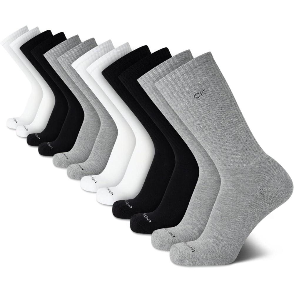 Calvin Klein Mens Crew Socks - 12 Pack Cushioned Breathable Athletic Performance Crew Socks for Men for Sports & Running(Grey/Black/White)